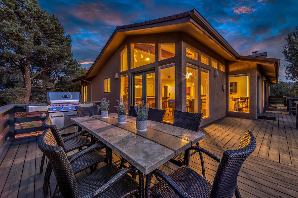 ¡Bienvenido a tu próximo retiro con vistas a las montañas más hermosas de Sedona! Esta casa céntrica tiene unas vistas increíbles, un enorme patio privado, un interior bellamente diseñado, jacuzzi, parrilla, asientos al aire libre y comedores, chimenea, cocina surtida y mucho más, ¡ofreciendo una experiencia INIGUALABLE para tu próximo viaje! Disfruta de tus días en esta fantástica ubicación cerca de los mejores senderos, restaurantes y tiendas. ¡Vuelve a casa con total serenidad y paz con vistas a las montañas!