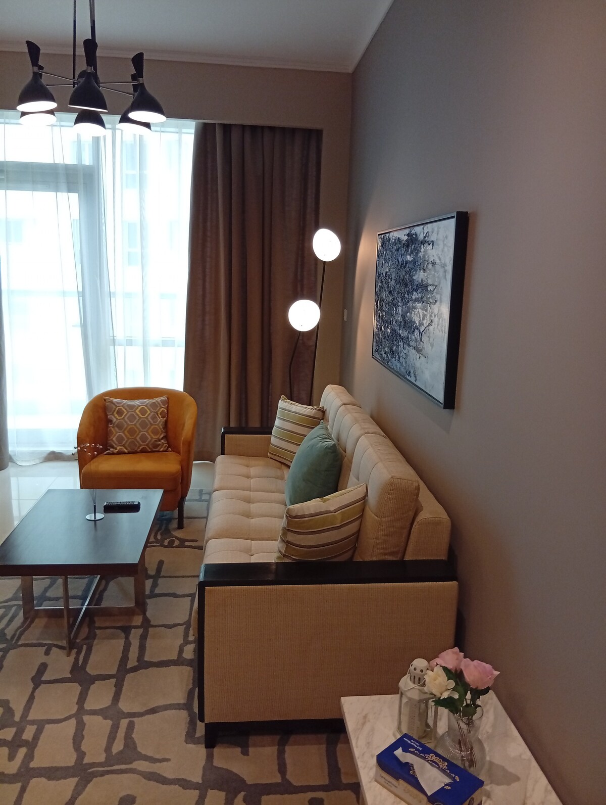 Apartamento moderno totalmente amueblado con todo lo que puedas imaginar, incluyendo lavadora/secadora, wifi, cocina totalmente equipada y amplio aparcamiento frente al edificio de apartamentos. El apartamento está a 10 pasos del restaurante/bar Lanterns en Amwaj y a 5 minutos a pie de Lagoon, una popular zona comercial y de restaurantes en la isla Amwaj. Los huéspedes tienen acceso a la playa privada de Floating City.