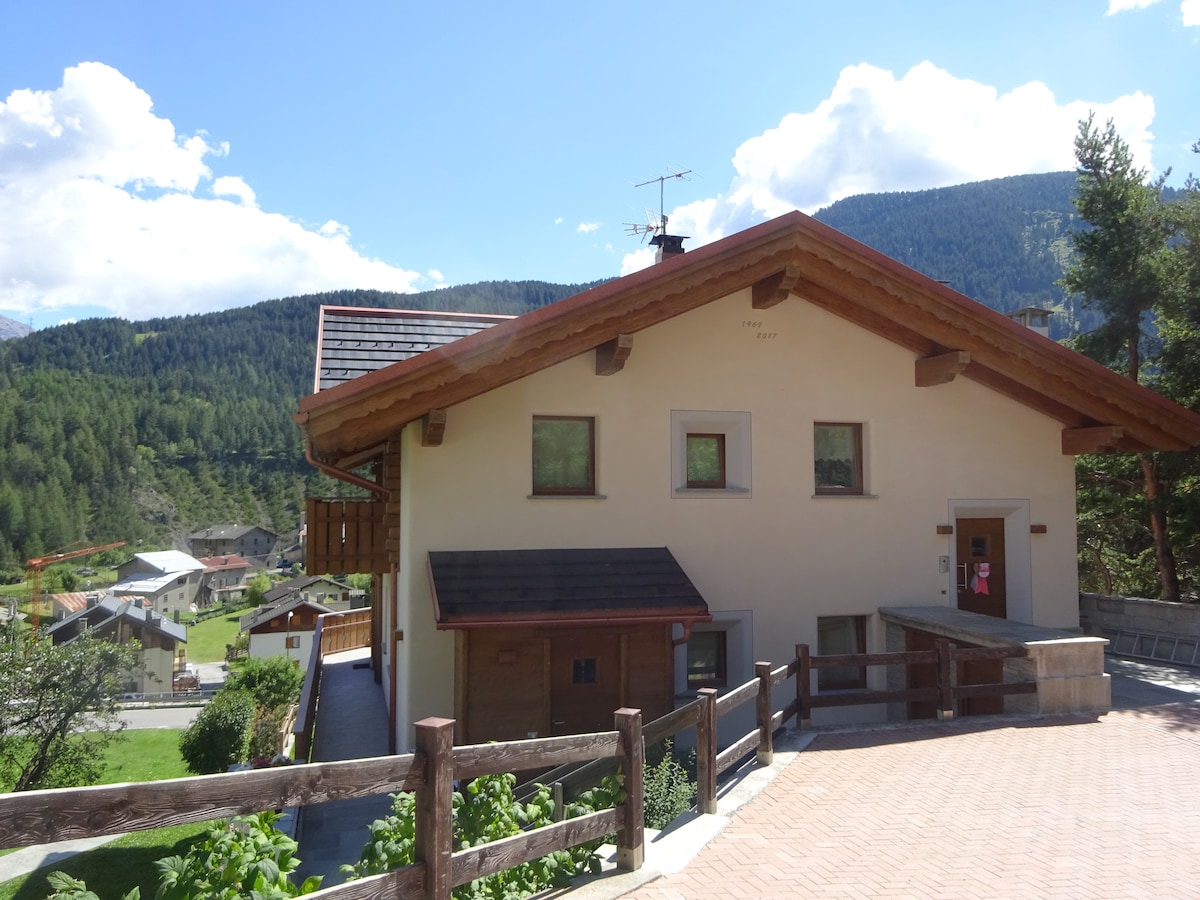 Rifugiatevi nella nostra accogliente casa con due camere da letto nel Parco Nazionale dello Stelvio. Rilassatevi nell'ampia zona giorno con camino, preparate prelibatezze nella cucina attrezzata e godetevi il balcone con vista sulle montagne. La casa è circondata dal verde con sentieri escursionistici nelle vicinanze e ha un parco giochi a pochi passi. A pochi minuti dalle piste da sci di Bormio e dai bagni termali. Perfetta per famiglie o coppie in cerca di una rilassante vacanza in montagna.