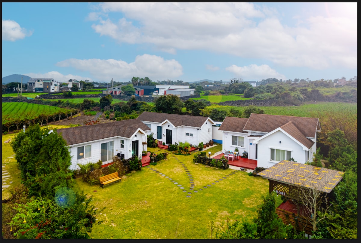 Ubicado en un pueblo tranquilo entre la isla de Jeju Hallasan y el este, está cerca de las principales atracciones turísticas en el noreste de Jeju, como Udo, Seongsan Ilchulbong, Seopjikoji, Gimnyeong Beach, Woljeongri Beach y Hamdeok Beach, por lo que es un lugar muy bueno para rutas de viaje. Mientras te alojas en un pueblo tranquilo rodeado de naturaleza, puedes sentir la relajación como si el tiempo fluyera lentamente. En particular, un huésped reciente dijo: “Me gustó mucho porque todo parecía que fluía lentamente aquí”. Experimenta esa relajación por ti mismo. Es un pequeño placer tener una mañana agradable con un desayuno cuidadosamente preparado, y disfrutar de un paseo con el lindo cachorro Cozy. Siente la cálida hospitalidad de la cálida pareja anfitriona, que son como un tío y una tía. Presentamos un inolvidable viaje a Jeju con una cuidadosa consideración y dedicación a todos los viajeros que quieran pasar tiempo a solas, parejas que buscan un descanso romántico y huéspedes familiares que quieran crear recuerdos especiales. Tómate un descanso de la ajetreada vida de la ciudad y disfruta de tu propio tiempo libre.
