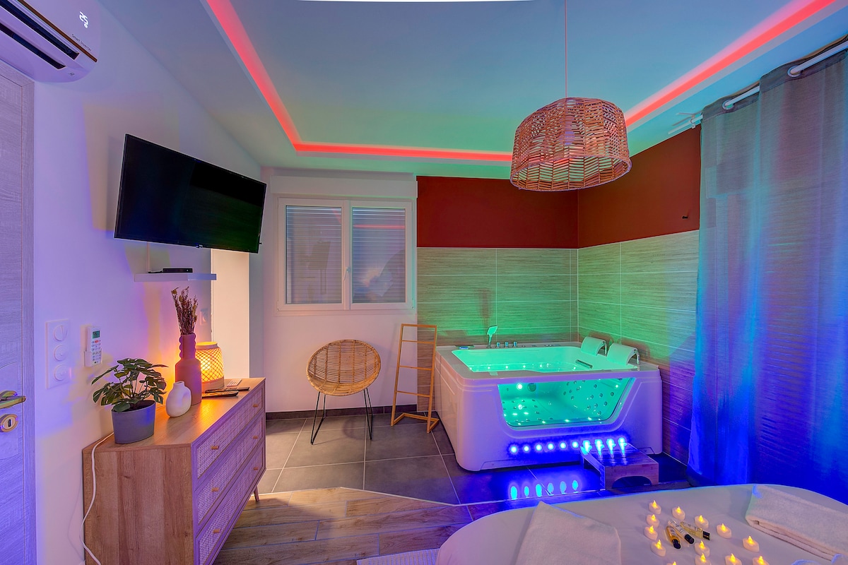 Une parenthèse de douceur avec ce froid. Détendez-vous dans un jacuzzi thérapeutique digne des plus belles thalassos et profitez d’un moment chaleureux à deux. Petit déjeuner et décoration romantique en option. Vélos électriques, service à raclette et parking privé sécurisé à disposition. Une escapade hivernale unique, mêlant détente, chaleur et évasion. Tout est là pour que vous passiez une belle soirée au calme en amoureux loin de l’agitation du quotidien. Un peu de zen ça fait du bien. <3