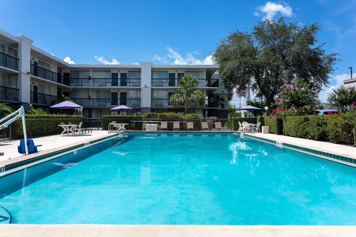 Encuentra tu lugar soleado cerca de Uptown Altamonte y Cranes Roost Park, donde las mañanas comienzan con café recién hecho y desayuno gratis, y los días terminan con colgantes junto a la piscina. Cada suite se siente como tu propio miniapartamento de Florida, completo con una cocina completa y una acogedora sala de estar. Apto para mascotas y perfectamente ubicado cerca de restaurantes locales, senderos y la emoción de Orlando, este alojamiento está diseñado para huéspedes que desean ese ambiente de "vivir como un habitante más" con todas las ventajas de unas vacaciones.