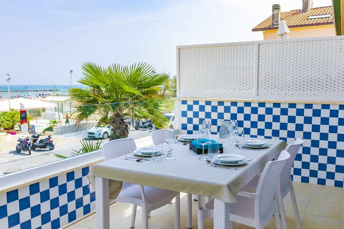 A solo 500 metros de la Rotonda sul Mare, se encuentra este luminoso ático con vistas al mar. El apartamento, completamente renovado, es ideal para parejas y parejas de amigos. Orientadas al norte, las terrazas también se pueden utilizar durante el día. Además de la terraza en la planta, la propiedad se completa con una azotea panorámica de uso exclusivo, equipada con zona de relax y ducha exterior. Desde la casa se puede llegar a pie al centro histórico y a la estación de tren. Incluye 1 sombrilla y 2 tumbonas.