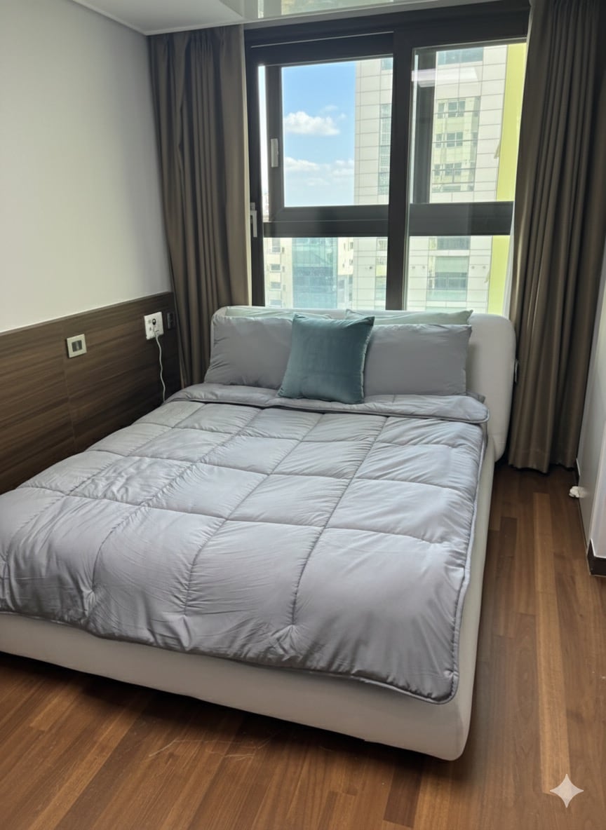 Es un edificio nuevo que es elegante y limpio. Quinto sótano hasta el piso 18 sobre el suelo (con ascensor) Ideal para viajes, viajes de trabajo, viajes de negocios y mucho más. Las estadías largas están disponibles. * 1 habitación, 1 sala de estar, 1 baño. Tiene capacidad para 2 o 3 personas. - Cama: 1 cama tamaño queen, 1 individual. - Lavadora, secadora, secadora pequeña. -Fridge - cubiertos de cocina básicos. - Conjunto de televisión - Aire acondicionado. - Mesa, silla, sofá. - Vestidor. - Toallas, secador de pelo. - Champú, acondicionador para el cabello, gel de baño. - Plancha, tabla de planchar. - Detergente para la ropa, artículos de limpieza, bolsas de basura, etc. - A 5 minutos a pie de la estación de metro, línea 3, estación de la terminal de Nambu. - A 5 minutos a pie de la parada de autobús Seocho Art Zai Apartment. - A 5 minutos a pie del supermercado Emart Everyday. - Tienda de conveniencia (7-Eleven, GS25) a 2 minutos a pie. Si tienes alguna pregunta o dificultad, no dudes en ponerte en contacto con nosotros. Te ayudaremos con respuestas rápidas y respuestas amigables. Gracias:)