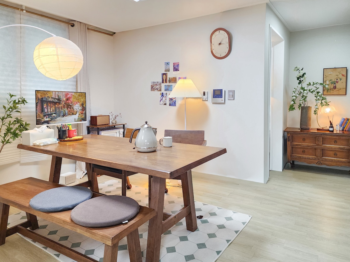 <Oferta especial entre semana> A 10 minutos de Hongdae / A 3 minutos a pie de la estación de Daehung / Pantalla grande / Guardarropa / Aire acondicionado / Desayuno / Alojamiento familiar