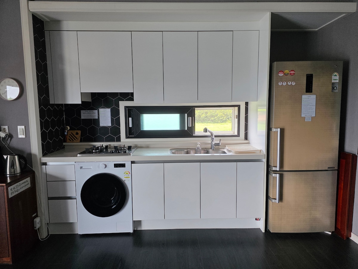 Hola Este es un muro ubicado en Sinseon-ri, Seongsan-eup, Seogwipo-si, Jeju-do. @mooroom_stay (Instagram de Mooroom) Es una casa privada de 140 pyeong. Ubicado en un pueblo tranquilo, significa que la habitación no tiene preocupaciones. Es un lugar tranquilo y agradable para dormir o descansar sin pensar en nada. Pyoseon Beach Seopjikoji Seongsan Ilchulbong está cerca. Puede caminar por la costa en 5 minutos a pie y salir del tercer curso (B) de Jeju Olle Trail. La parada de autobús y la estación de carga de vehículos eléctricos, el mart y la tienda de conveniencia están ubicados a 3 minutos a pie:) Equipamiento Dadosang Dadosang Set Stand by Me Sofá Cama Marshall Altavoz Bluetooth WiFi Internet Setop Box Portmanteau y Mason 2 tipos de té 2 tipos de café en cápsulas Illy Welcomesnack Purificador de agua (al lado del fregadero) Nevera, microondas, utensilios básicos de cocina, inducción, cafetera illy, abridor de botellas, puerto eléctrico, champú, tratamiento, gel de baño, loción corporal, gel de manos, secador de pelo, agua caliente, aire acondicionado, secador de pelo, circuito cerrado de televisión