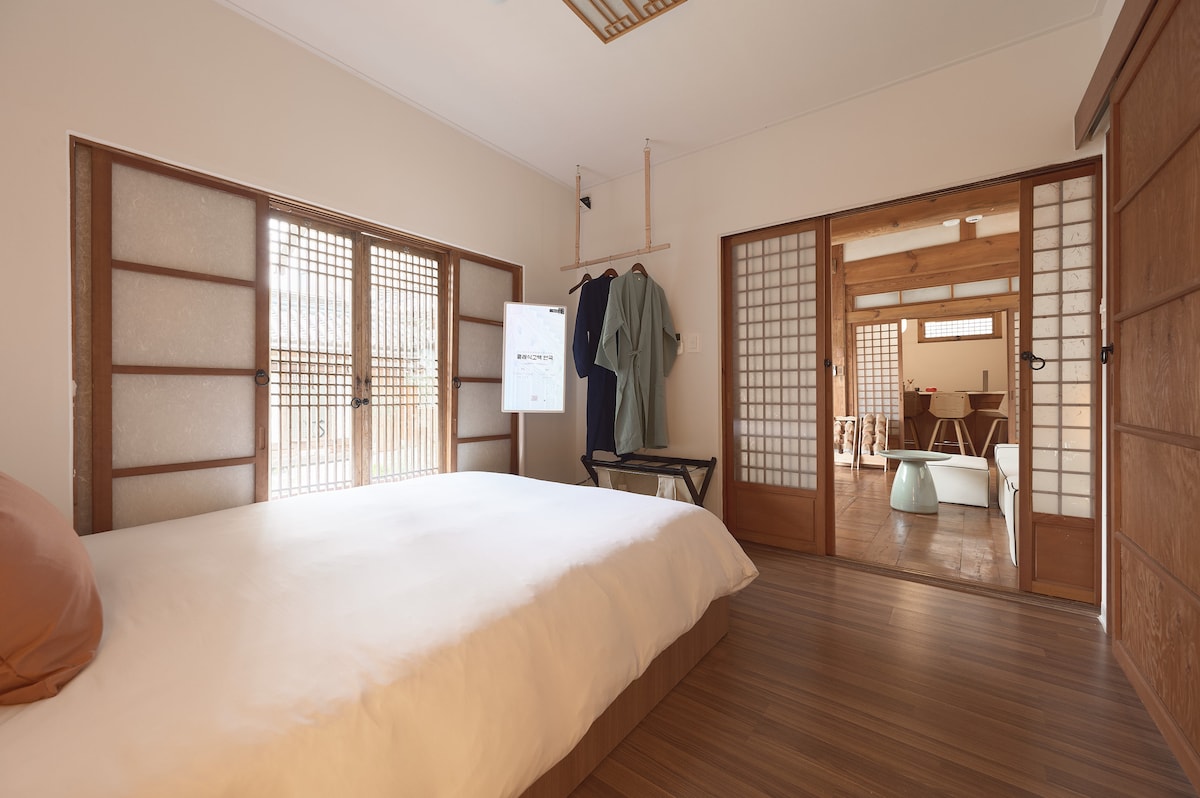 🌿 Un tranquilo refugio Hanok en el corazón de la ciudad, donde la naturaleza se encuentra con la comodidad Este hanok coreano tradicional bellamente restaurado combina el encanto atemporal con el confort moderno. Aunque está convenientemente ubicado en la ciudad, el alojamiento se encuentra junto a una pequeña montaña y cuenta con un amplio patio privado, lo que te permite disfrutar tanto de la comodidad urbana como de la tranquilidad natural al mismo tiempo.