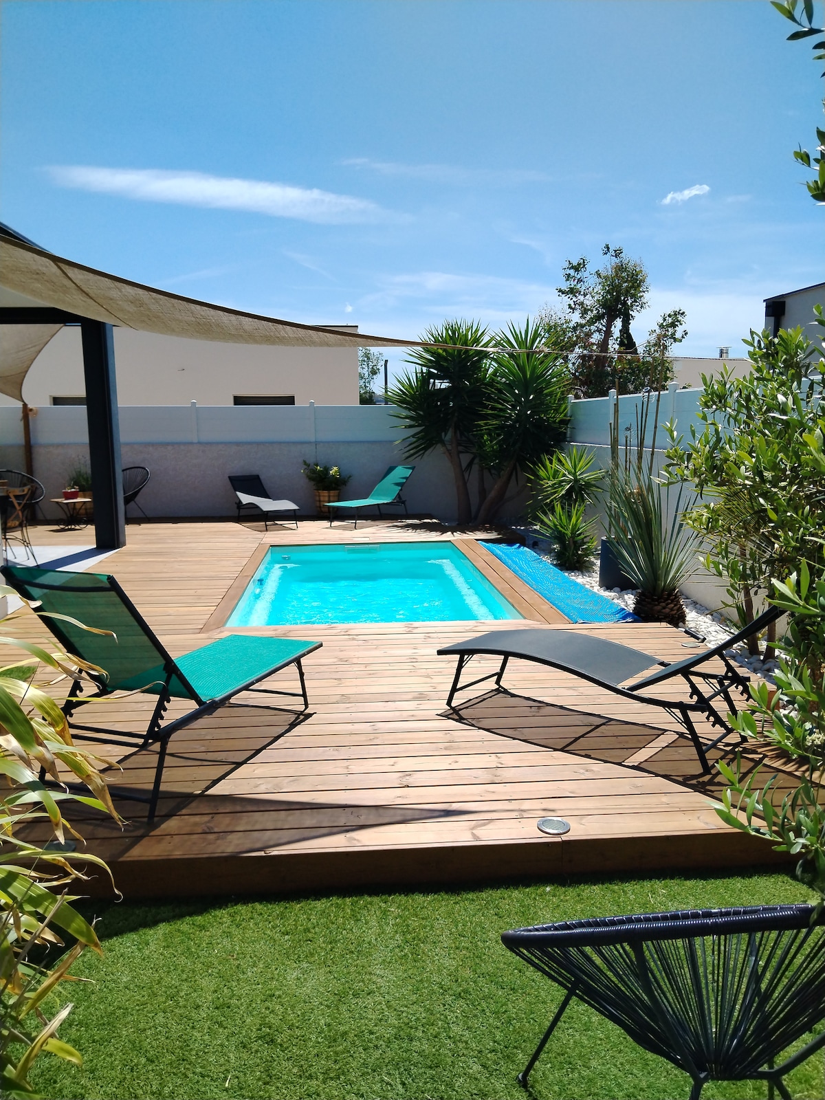 Villa Miray – meublé classé ★★★ à Sérignan. Maison neuve de 118 m², 3 chambres climatisées, 3 lits queen size + canapé convertible. Piscine privée, jardin aménagé, terrasse, douche et WC extérieurs. Plage à 15 min à pied, commerces à proximité. Cuisine équipée, séjour lumineux, confort moderne, calme et intimité. Idéale familles & amis, jusqu’à 8 personnes. Climatisation intégrale.