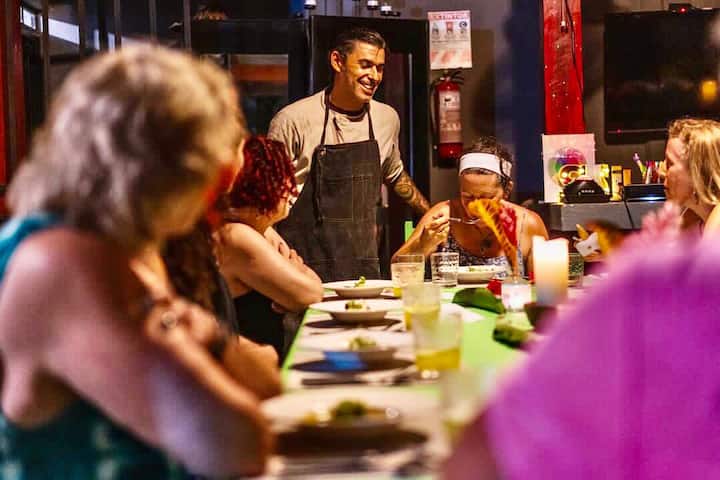Disfruta de una cena de 5 platos de origen vegetal con ingredientes orgánicos y de cultivo local. La experiencia incluye un cóctel de autor que combina a la perfección con los sabores de la comida. Los ingredientes proceden de mercados de agricultores locales y se preparan en el lugar.
