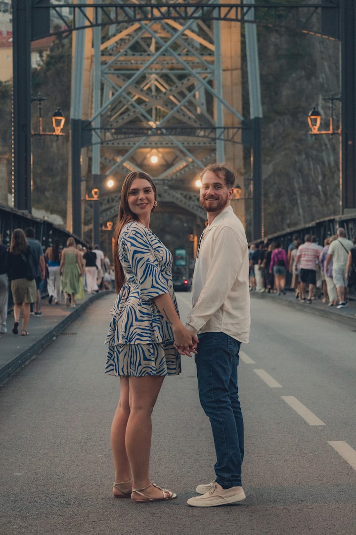 En una sesión rápida y relajada, registraremos tu tiempo en Oporto en uno de los escenarios más emblemáticos de la ciudad, con fotos espontáneas y naturales y una dirección ligera.