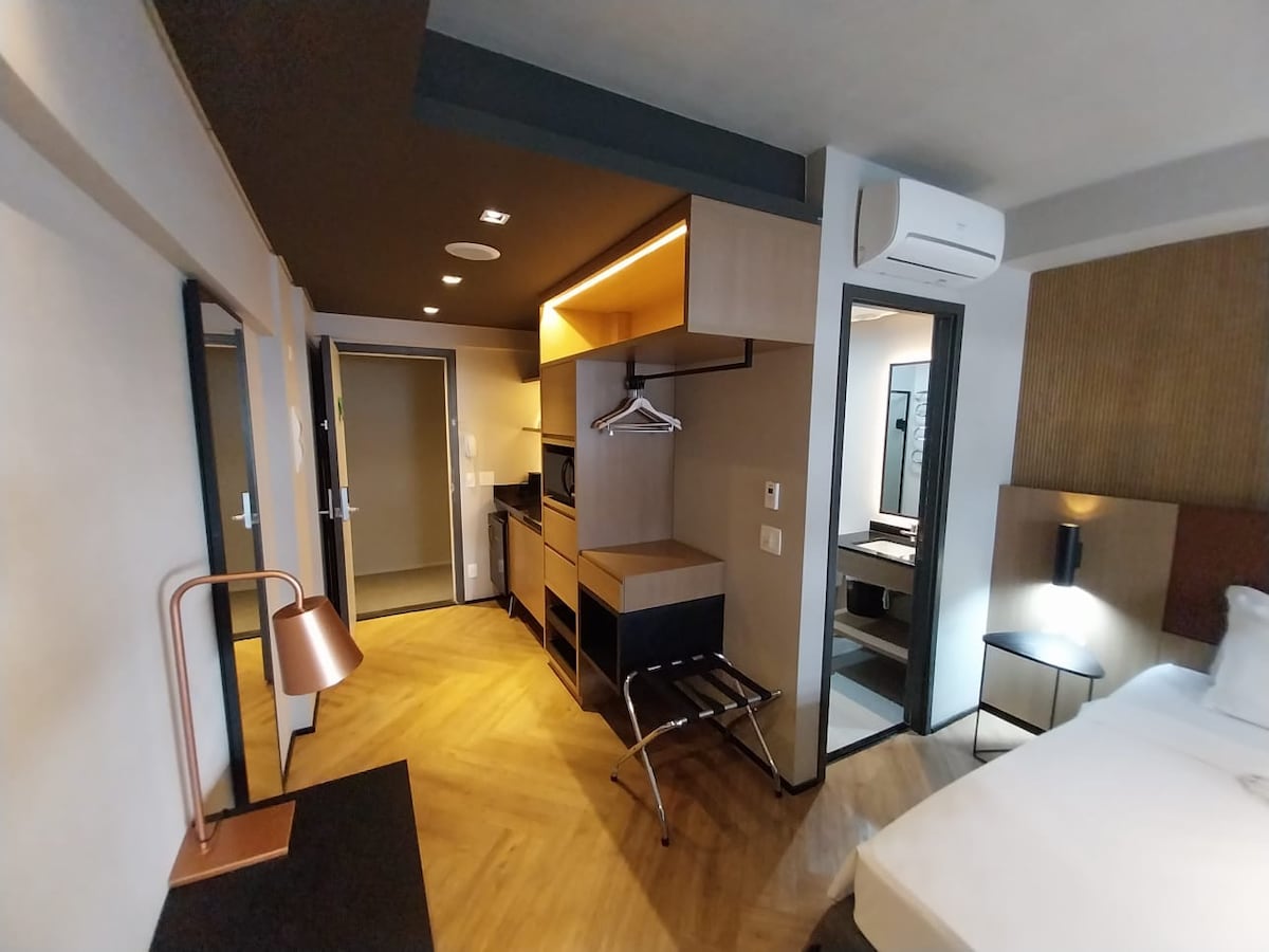 Flexibilidad de check-in/check-out disponible bajo petición; Estudio completamente nuevo en un proyecto recién inaugurado, súper equipado para hacer que su experiencia sea única. Cerca de cualquier lugar de la ciudad de São Paulo (2 líneas de metro, a menos de 2 minutos a pie). Flexibilidad de check-in/check-out disponible a pedido; Nuevo estudio en un edificio nuevo. Totalmente equipado para hacer que su experiencia sea única y más cerca de cualquier lugar de São Paulo (2 líneas de metro, a menos de 2 minutos a pie).