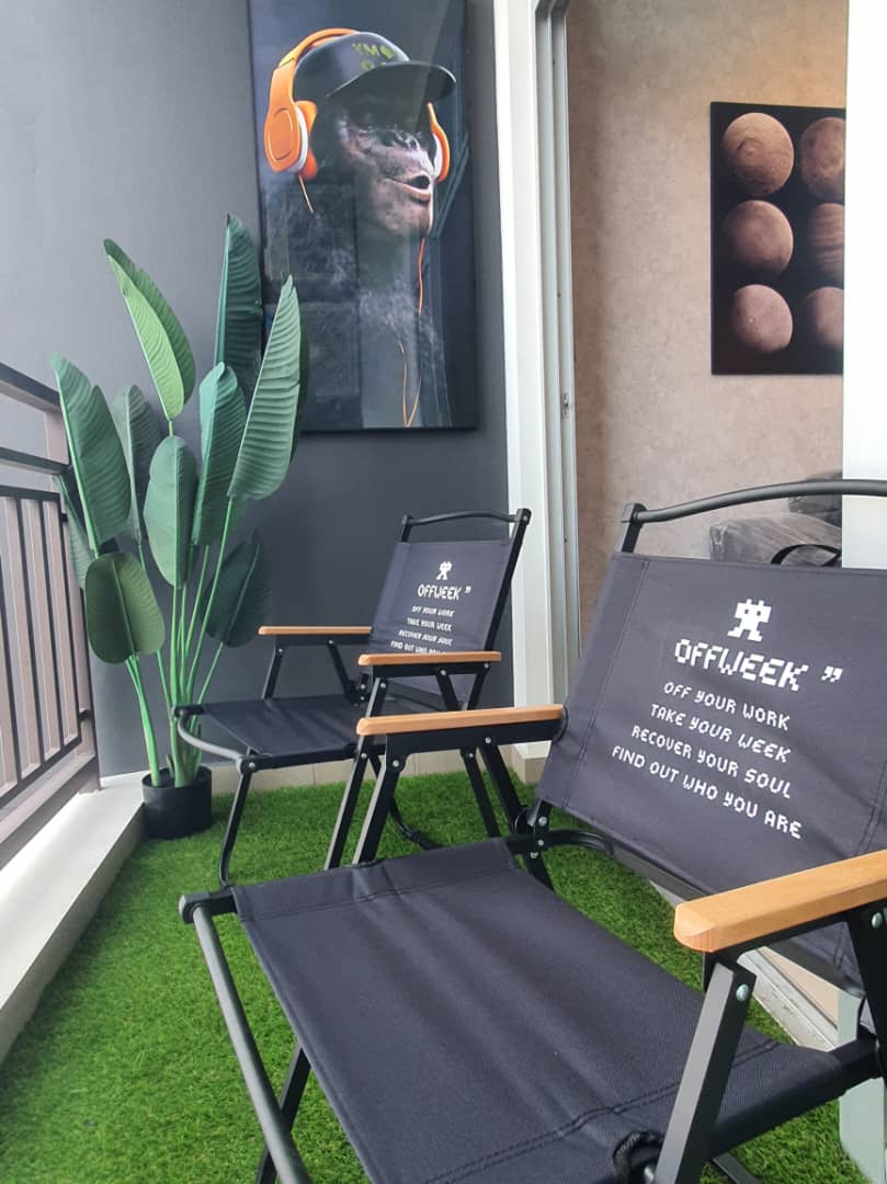 Este es un espacioso alojamiento de 2 dormitorios perfectamente apto para huéspedes de hasta 5 personas con un total de 1 cama tamaño king, 1 cama tamaño queen y 1 cama individual. Planta alta con vistas altas. 1. Cancha de baloncesto 1. Gimnasio 2. Salón de actos 3. Salón 4. Biblioteca 5. Tienda de manicura 6. Miniteatro 7. Zona de barbacoa 8. Piscina 9. Sauna 10. Jacuzzi 11. Sala de juegos (mesa de billar, sala de PS, dardos y más) 12. Lavandería 13. Minimercado - Jardín en la azotea. Los huéspedes no pueden fumar en la habitación, por favor, fuma en el balcón si es necesario.