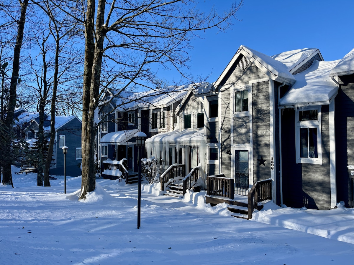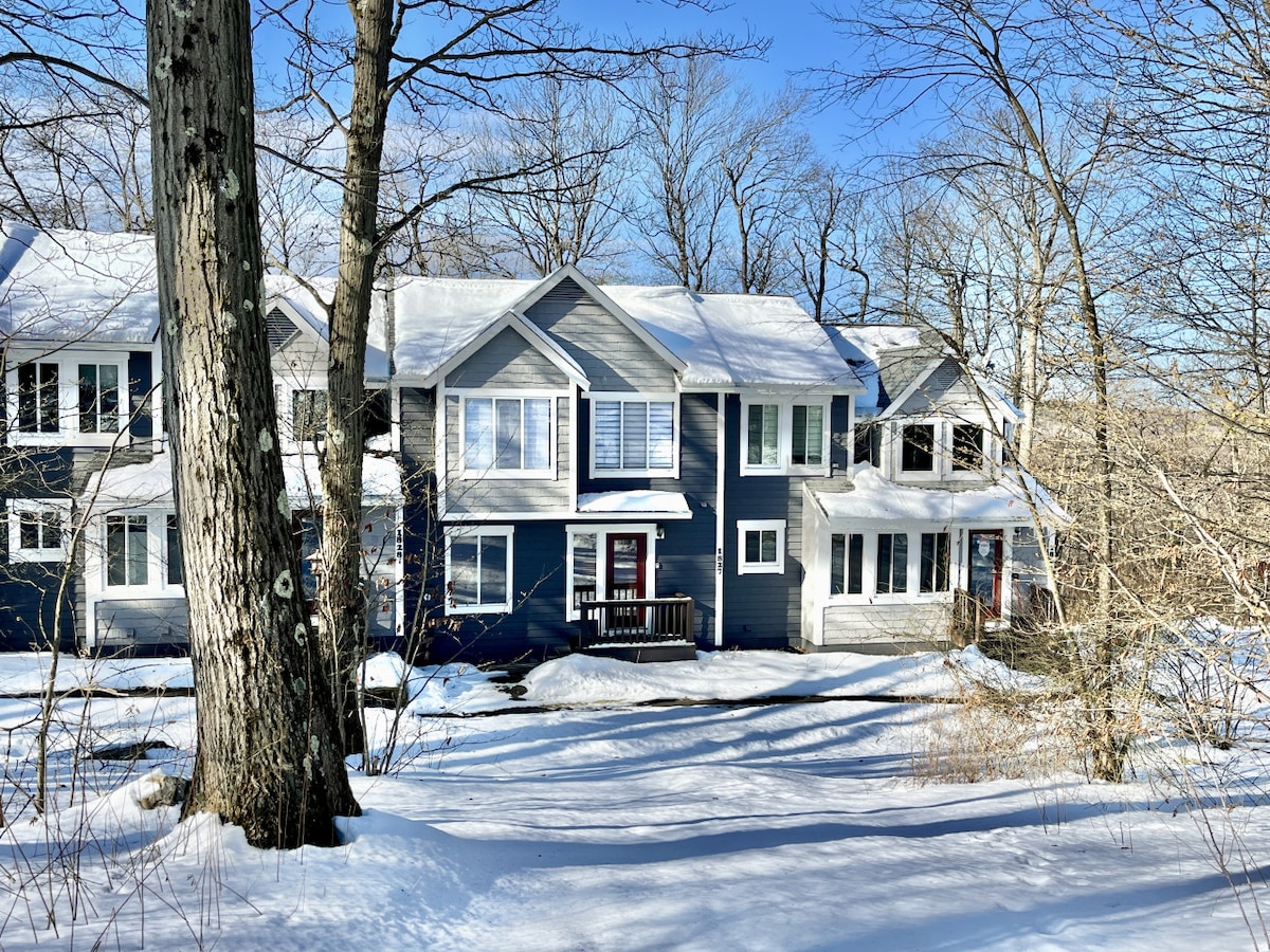 Capacidad para 13 personas ¡A poca distancia a pie de las pistas de esquí! ¡Casa adosada reformada de 3 dormitorios, 3,5 baños y loft! El chalet cuenta con 2 camas tamaño king, 1 cama tamaño queen, 4 camas individuales y un sofá cama tamaño queen. Las camas individuales se pueden juntar para hacer 2 camas completas. ¡Incluye acceso a una bañera de hidromasaje privada, cocina al aire libre, comedor al aire libre y dos patios! Las mejores pistas del oeste de Pensilvania. Hay un servicio de transporte las 24 horas al albergue principal. Hay muchas rutas de ciclismo/senderismo, golf y una piscina en verano. ¡Diviértete al sol y en la nieve!