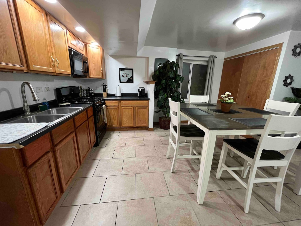 Super Clean, Quiet & Cozy! 🐕Pet friendly 🙂Event Room Available -Ask!! (Additional fee ) 90 mi to Chicago! 2 hrs to the Dells! 5 min west of Hwy 39/51 15 min to NIU 45 min to Rockford Walking and bike trail nearby! Beautiful home! Super clean! Monday-Sat check: 3 PM Sunday Check-In: 5 PM Our eight-jet power shower will relax those tired muscles after a full day of activity. A soak in our modern,free-standing tub will sooth and your worries away. A well stocked kitchen awaits you!