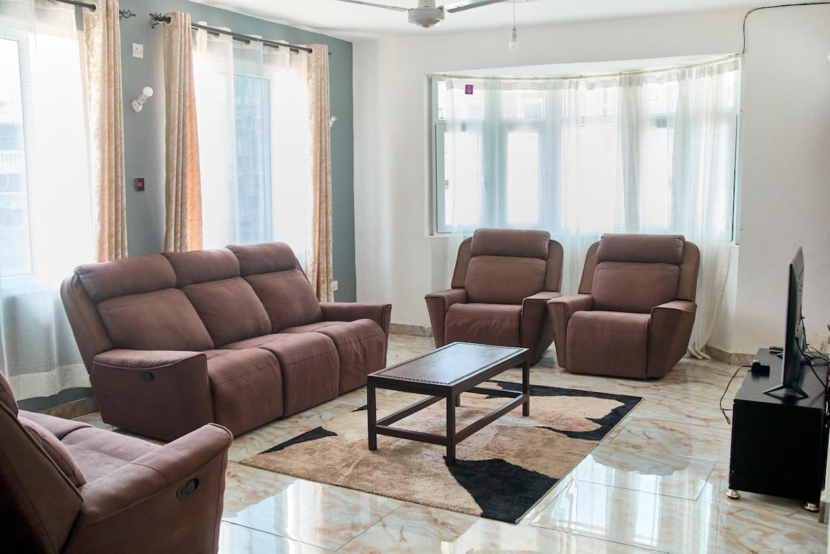 Kay's Residence es una villa privada cálida y lujosa ubicada en el corazón de Bamburi, Mombasa, que ofrece una combinación perfecta de confort acogedor y comodidad moderna. Los invitados disfrutan de: Privacidad ✅exclusiva: villa entera para ti sin espacios compartidos. ✅Exuberante jardín privado ✅Ambiente cálido, acogedor y hogareño: interiores ✅cuidadosamente decorados que te hacen sentir como en casa. ✅ Ubicación privilegiada: a minutos de Pirates Beach/Marine Park, lugares de compras, restaurantes y atracciones principales, pero lejos del ruido.