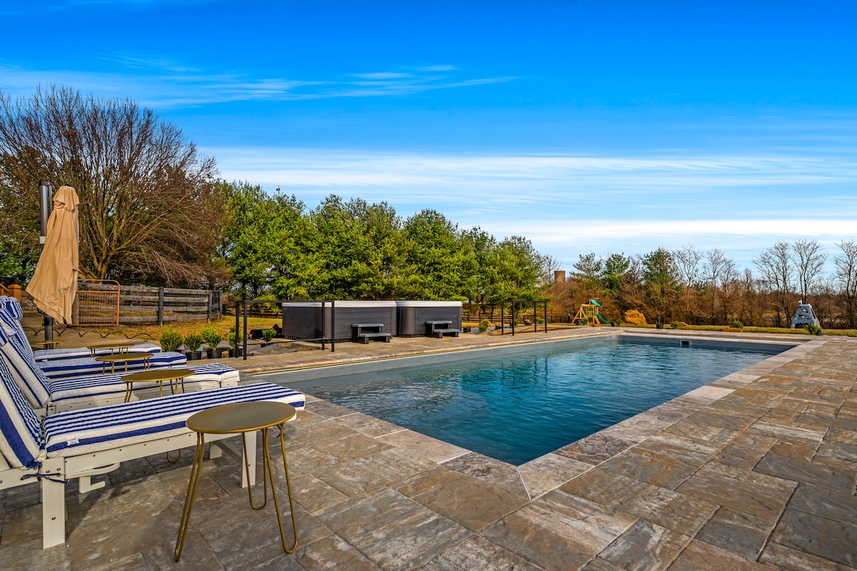 Hospédate y deléitate con esta casa de huéspedes de dos pisos recientemente renovada que colinda con nuestro granero de caballos de 11 puestos. Enmarcada por porches cubiertos y árboles de sombra, nuestra casa de huéspedes es un lugar maravilloso para descansar y relajarse durante tu estancia en el hermoso centro de Kentucky. Lo mejor de ambos mundos: un encantador entorno rural situado a solo minutos de la interestatal, lo que hace que viajar a Churchill Downs, al campo de golf Valhalla y a otras atracciones en las cercanías de Louisville y Frankfort sea muy fácil.