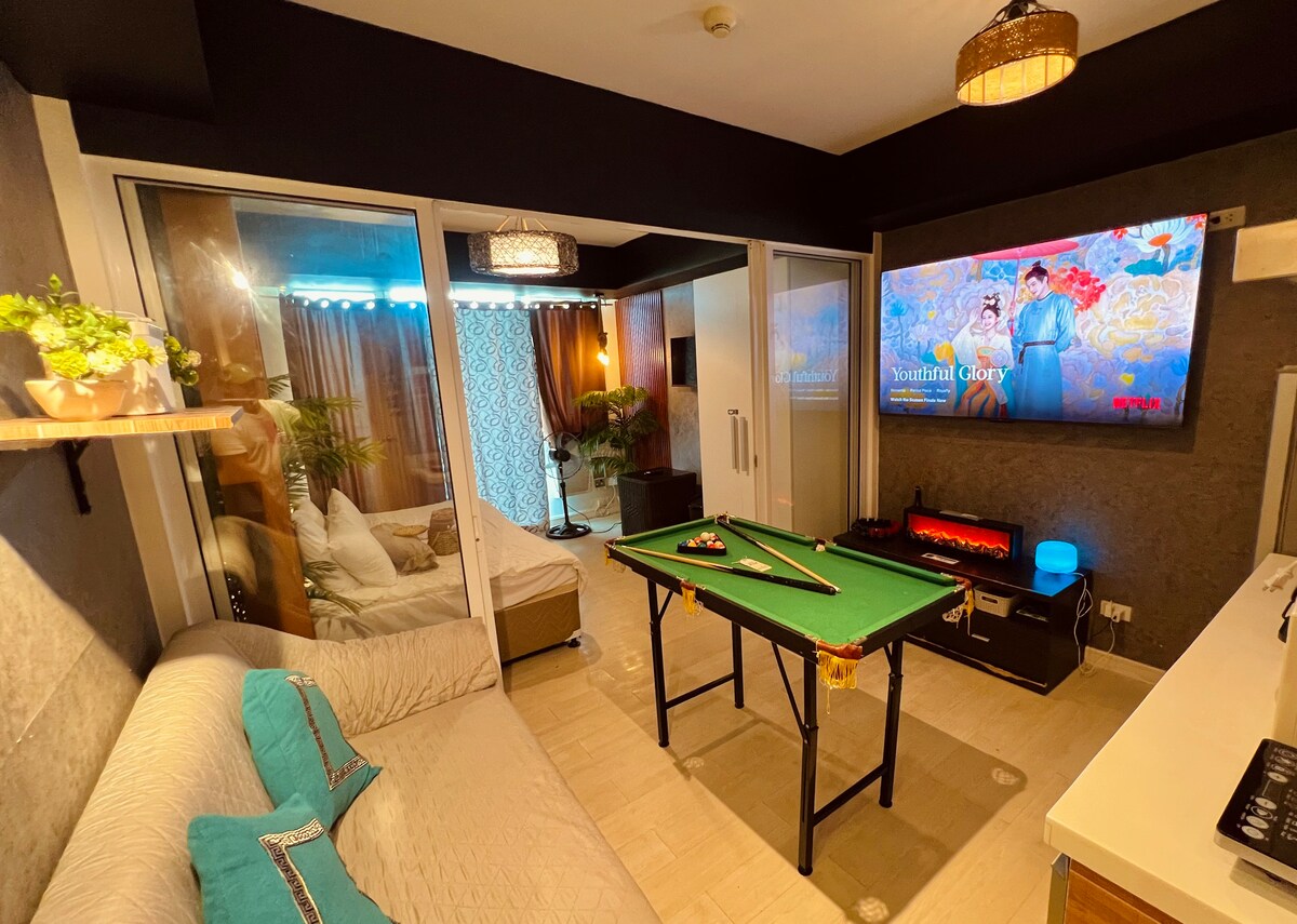 This stylish place to stay is perfect for group trips, this furnished condo provides a great modern resort lifestyle while having a relaxing staycation that makes you feel like you're in an oasis considering it's in the middle of a business district, making it accessible to all nearby establishments, offices, entertainment areas, and a distant away from the NAIA airport. Please inquire for additional guests