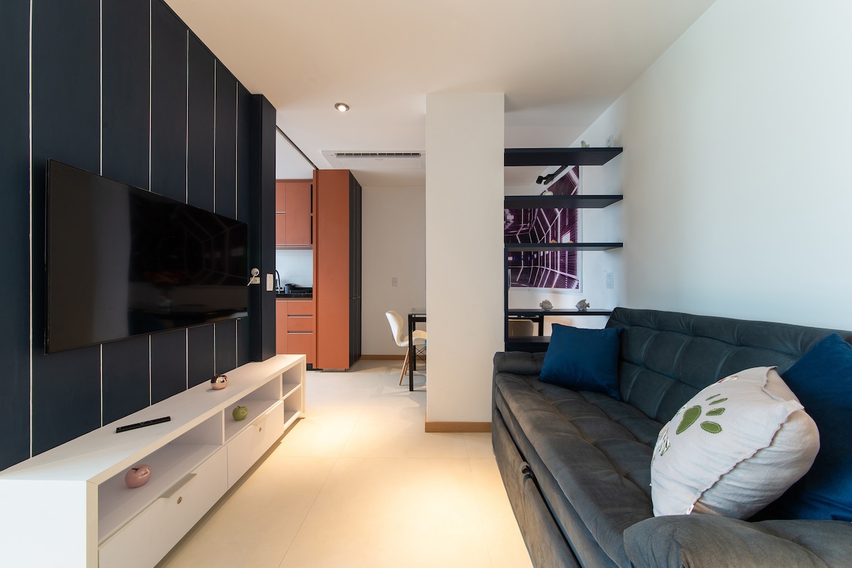 📍 Ubicación céntrica - Cabo Frío 🛌 Apartamento ideal para una pareja con un niño ESPACIO: Cama tamaño queen + 1 cama auxiliar individual Aire acondicionado ❄️ Televisor inteligente de 43 pulgadas. 📺 Wifi rápido 📶 Cocina compacta 🍽️ (freidora de aire + arrocera) Ropa de cama y baño 🧼 Espacio de oficina en casa 💻 CONDOMINIO: Piscina 🏊 Sauna 😌 Sala de máquinas 🏋️ Restaurante. 🍽️ Cochera 🚗