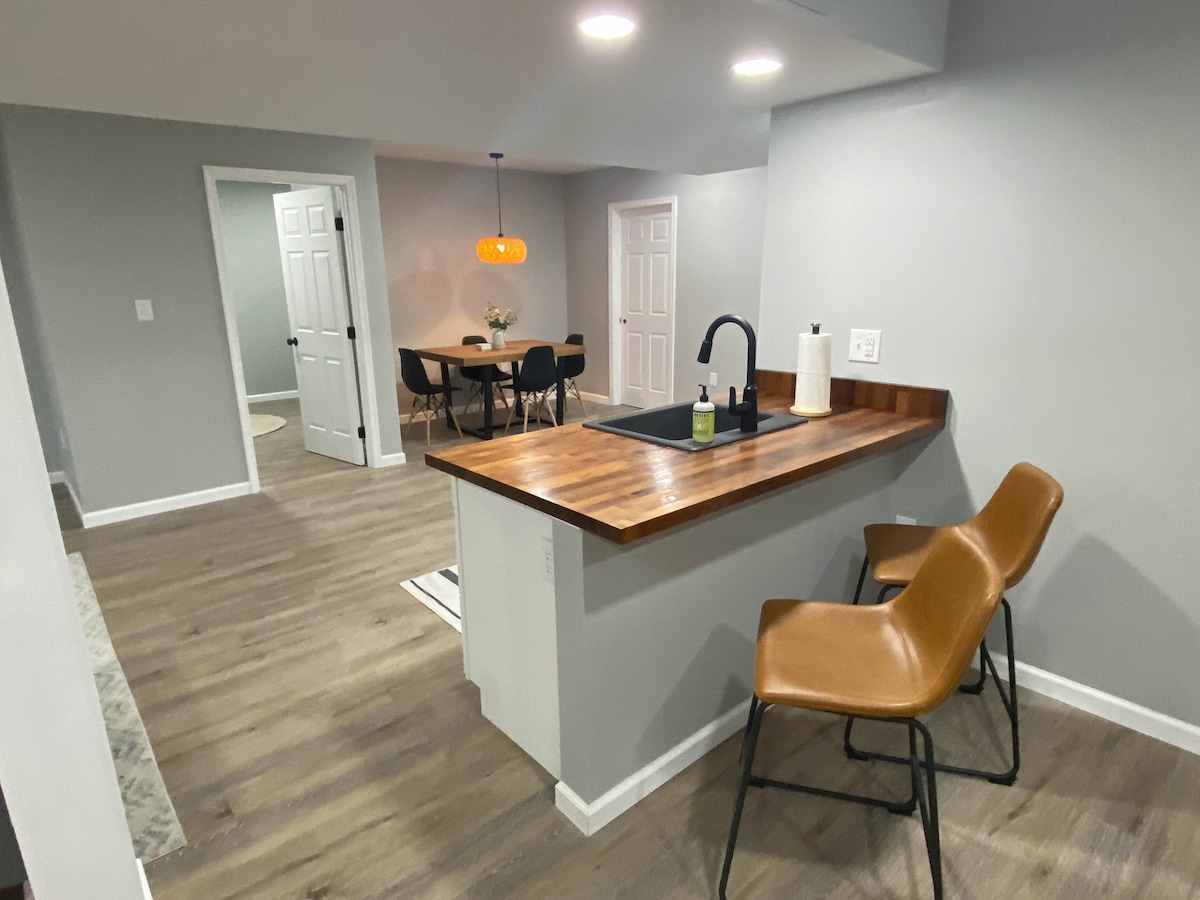 Mi espacioso departamento privado en la planta baja se encuentra cerca de campus y restaurantes. Cocina moderna y bien equipada. Entrada privada y estacionamiento. EL PRECIO BASE ES PARA DOS HUÉSPEDES QUE USEN UN DORMITORIO. SI NECESITAS DOS HUÉSPEDES PARA USAR DOS DORMITORIOS ($ 40 adicionales), REGÍSTRATE como 3 HUÉSPEDES, aunque solo sois dos. No puedes traer huéspedes que pernocten y que no hayas incluido en tu reservación. Las camionetas largas tendrán dificultades para dar la vuelta en nuestra entrada.