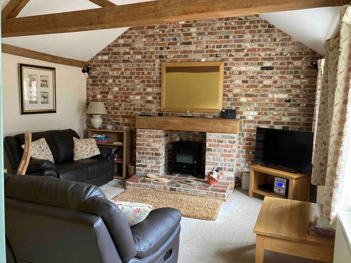 Granero acogedor y patio soleado | Cerca de la playa y Broads