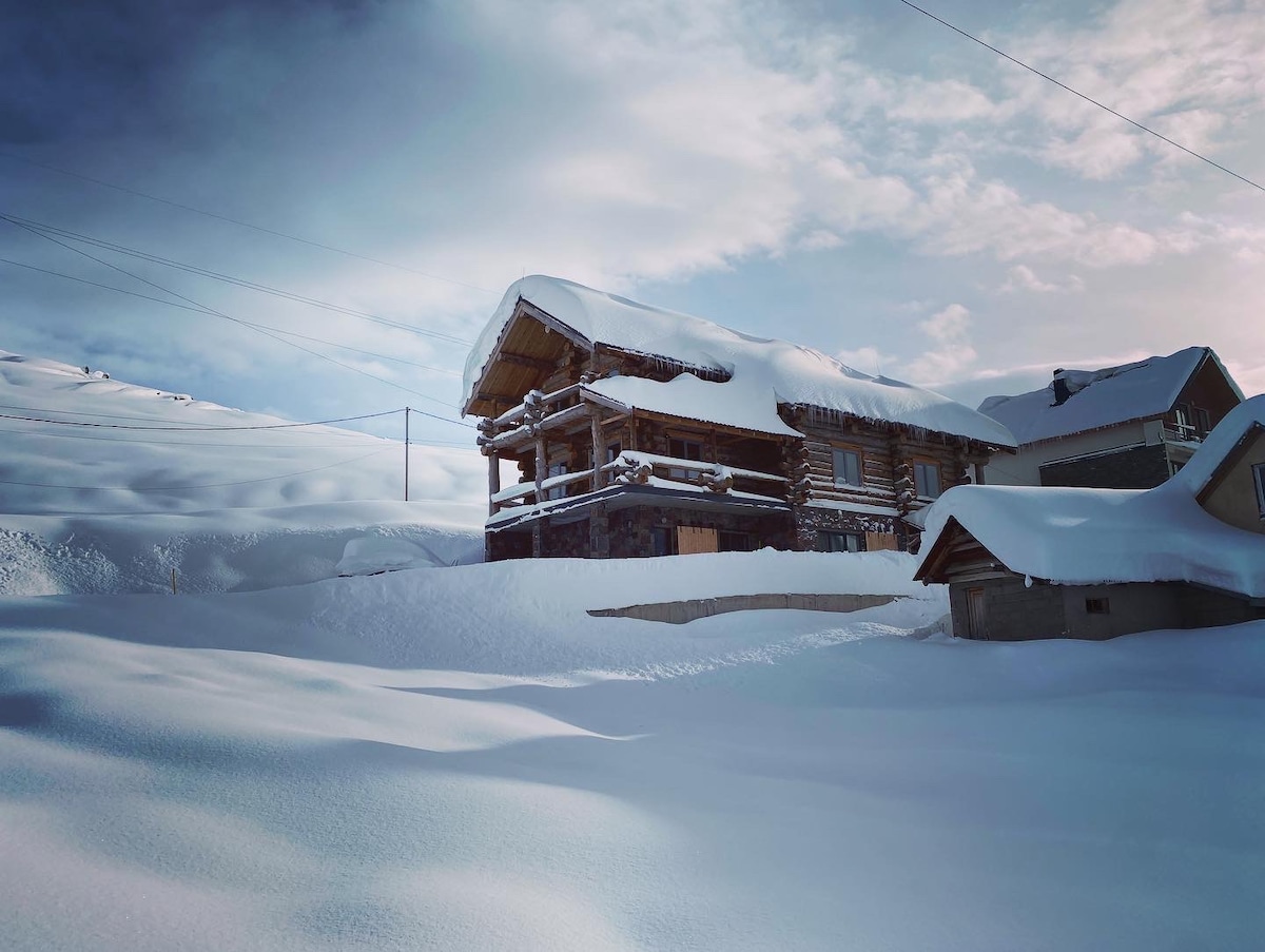 Alójate con tu familia en el centro de la estación de esquí de Bakuriani, a una altitud de 1750 m. El centro de Bakuriani está a cinco minutos a pie, donde se encuentran mercados, tiendas, farmacias, parque de atracciones para niños y adultos. También es posible llegar a la montaña Deed en coche o autobús en 7 minutos.
