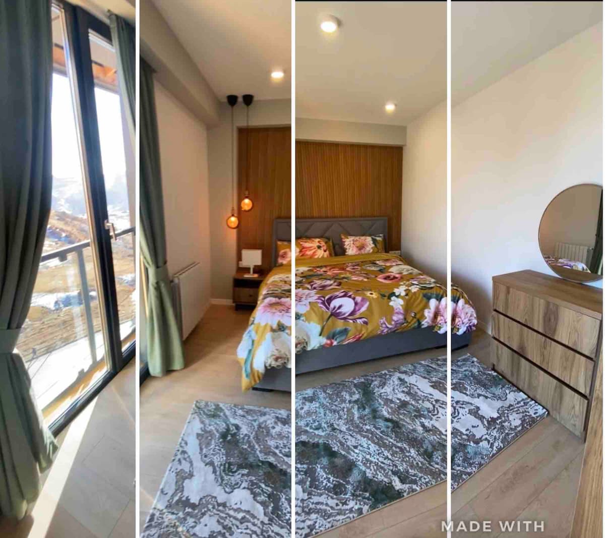 Estimados huéspedes, si quieren alojarse en un acogedor apartamento de lujo con impresionantes vistas a la montaña y a 1 minuto a pie del loft de esquí, el mini mercado y los restaurantes, este es el mejor lugar para alojarse. El departamento está totalmente equipado con todo lo necesario para tu estancia. Las características del apartamento incluyen wifi, TV inteligente, cama tamaño queen, sofá plegable, cocina americana completa, baño con secador de pelo y mucho más. Como extra, hay una pista de esquí justo enfrente del apartamento. ¿Por qué esperar? Reserva
