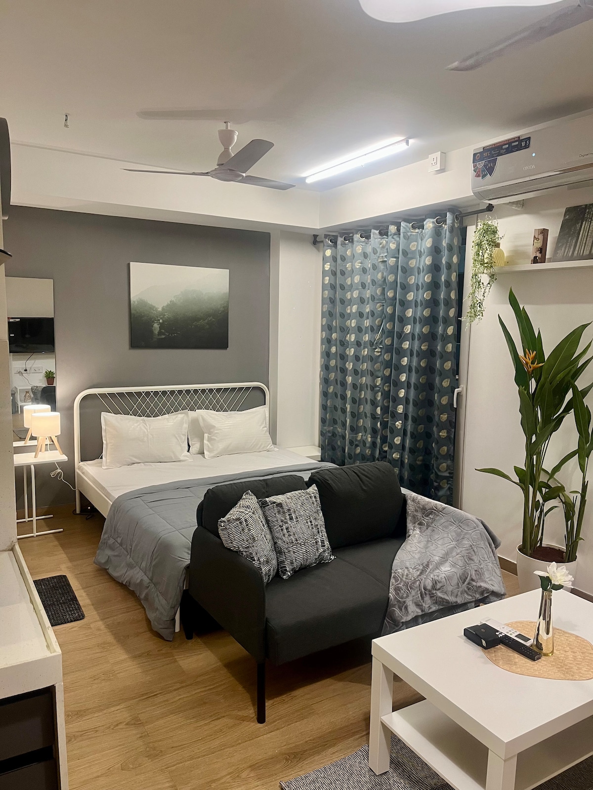 •Comfortable Living Space: Modern decor with a plush queen-size bed, a sofa, and a dining nook. •Fully Equipped Kitchen: Perfect for cooking meals or enjoying a morning coffee. •Amenities: High-speed Wi-Fi, a flat-screen TV, and AC •Prime Location: Close to public transport, shopping, and vibrant nightlife. Whether you’re exploring Pune’s attractions, savoring the local cuisine, or just unwinding, this studio has everything you need for a memorable stay. Book now for your perfect getaway!