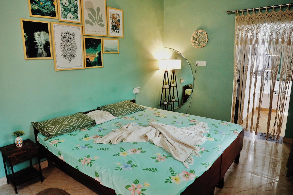 Bienvenido a nuestro acogedor ático en el segundo piso, con entrada privada y un encantador patio. La casa ofrece 2 dormitorios con aire acondicionado, cada uno con una cama tamaño king, 2 baños (uno adjunto, otro en la sala de estar), una cocina con filtro de agua RO y una pequeña área común con nevera. También se proporciona Wi-Fi de alta velocidad de Airtel y un escritorio. Nota: Si reservas para 1 o 2 personas, 1 dormitorio y 1 baño permanecerán cerrados para una experiencia más personalizada.