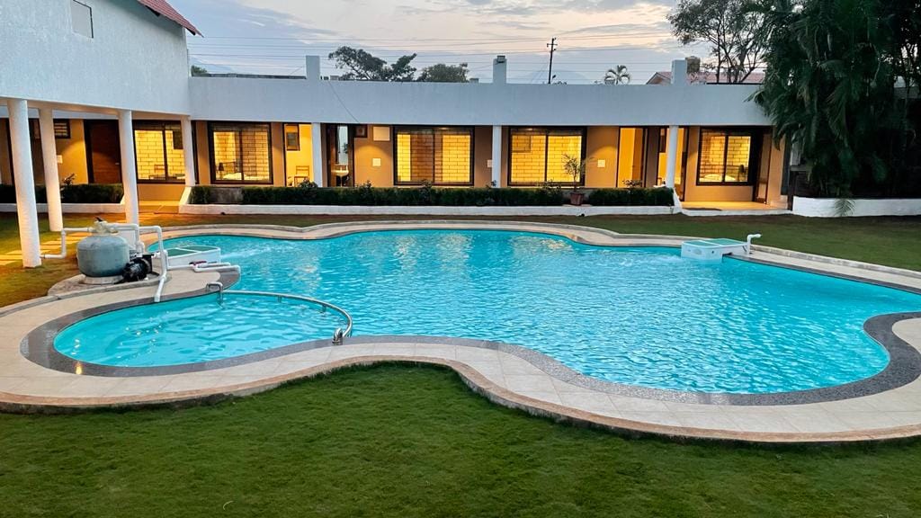 Anandam Lake Villa is a charming 3-bedroom villa in Pune that perfectly balances comfort and nature. Set against the scenic backdrop of the mountains, a serene lake, and the historic Sinhagad Fort, this residence offers breathtaking views from every corner. The interiors are designed for warmth and relaxation, with spacious rooms that open up to tranquil outdoor spaces. Guests can spend leisurely afternoons by the private pool, followed by an evening barbecue or a cozy bonfire under the stars.
