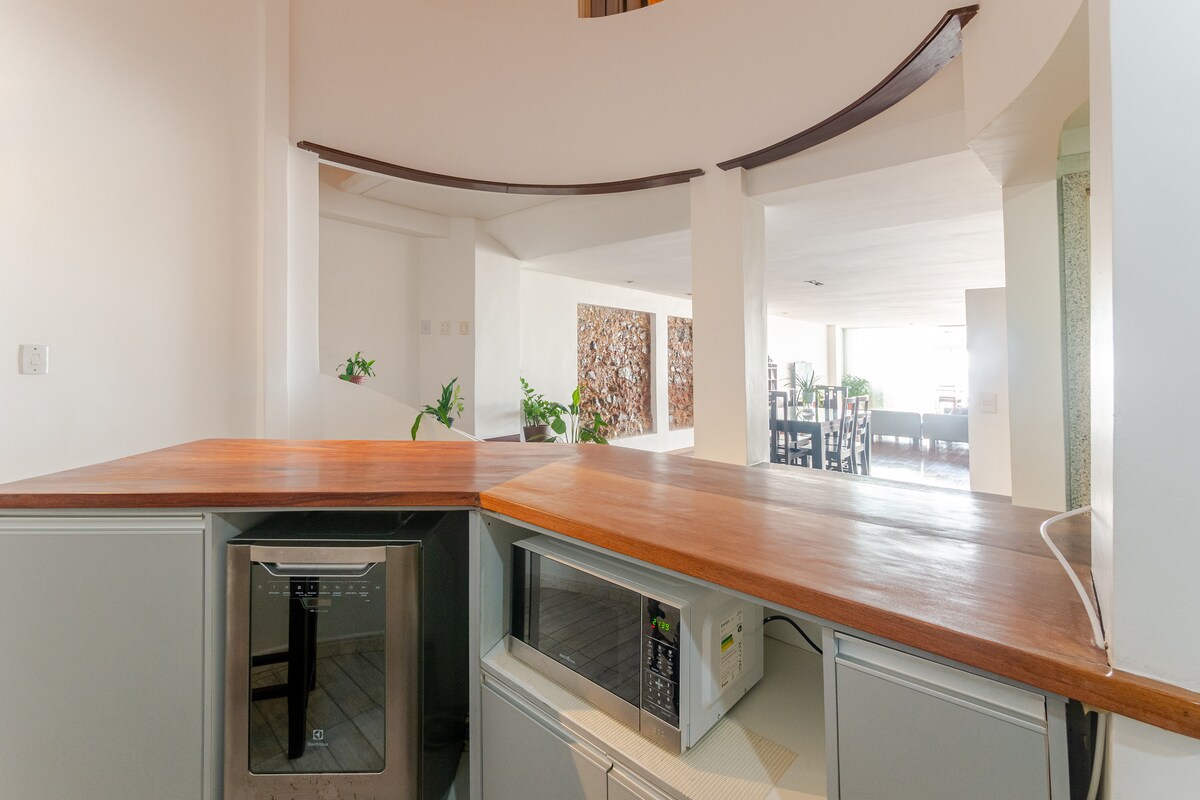 Cozy duplex with two en-suites and a private deck with pool overlooking the Baía de Todos os Santos. Located on a charming street with restaurants and cafés. Note: Residential building. - Only registered guests allowed — no visitors. Fine: R$200.00 per person/day. - Keep noise down when entering/exiting the building, especially at night (e.g. loud voices, slamming doors). A couple lives in a studio next to the building's entrance.