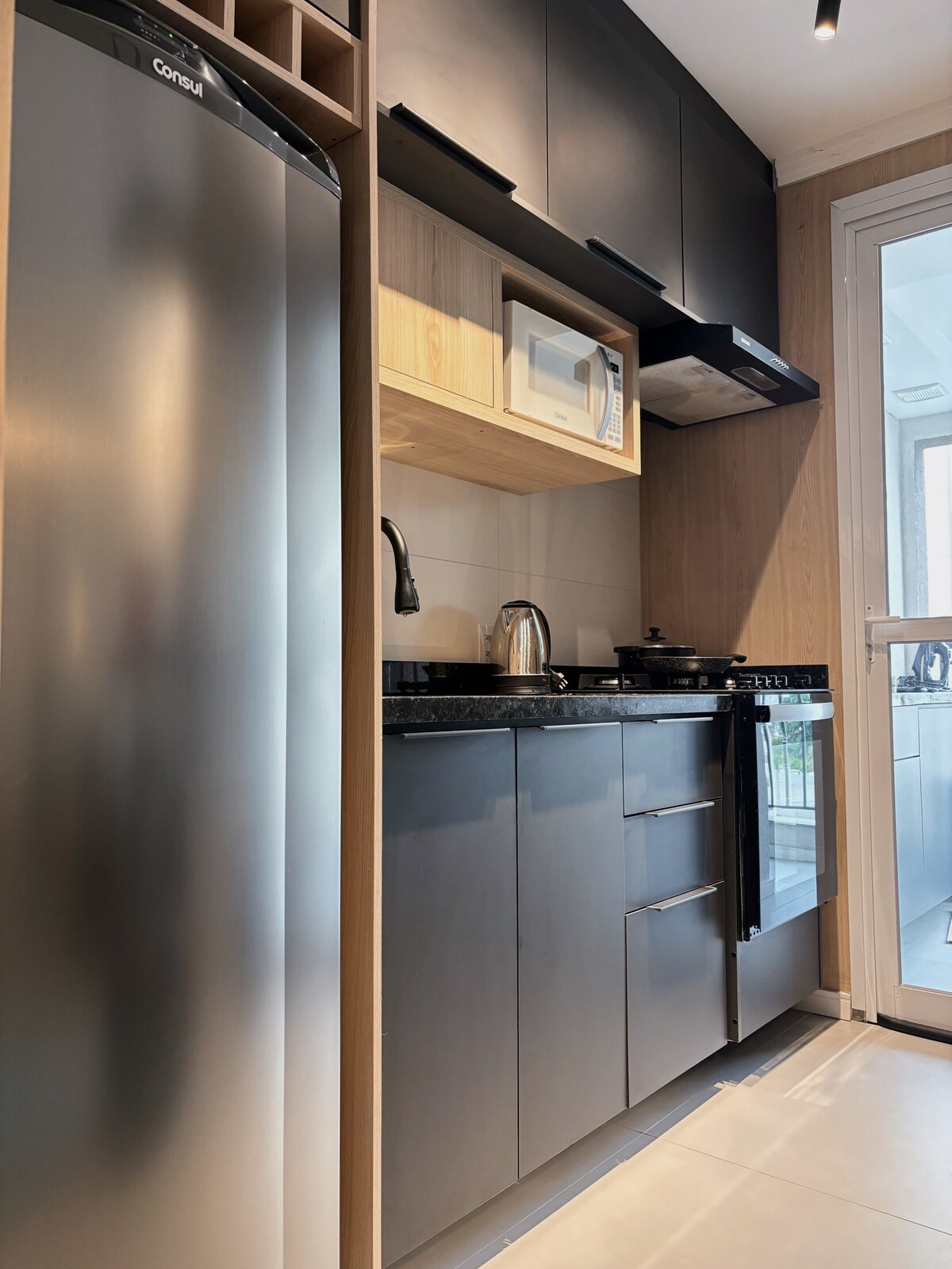 Experience One Eleven in Vila Olimpia. This modern apartment features large windows with breathtaking city views and natural light. The unit boasts 600 Mbps internet and a 4K HD TV. For total comfort, it has a Hot/Cold AC system: 27,000 BTU/h unit in the living room and 10,000 BTU/h in the bedroom. The bedroom is quiet and dark for a restful sleep. Impeccably maintained, you’ll be walking distance to top restaurants and business hubs—a safe, upscale retreat with a stunning urban backdrop.