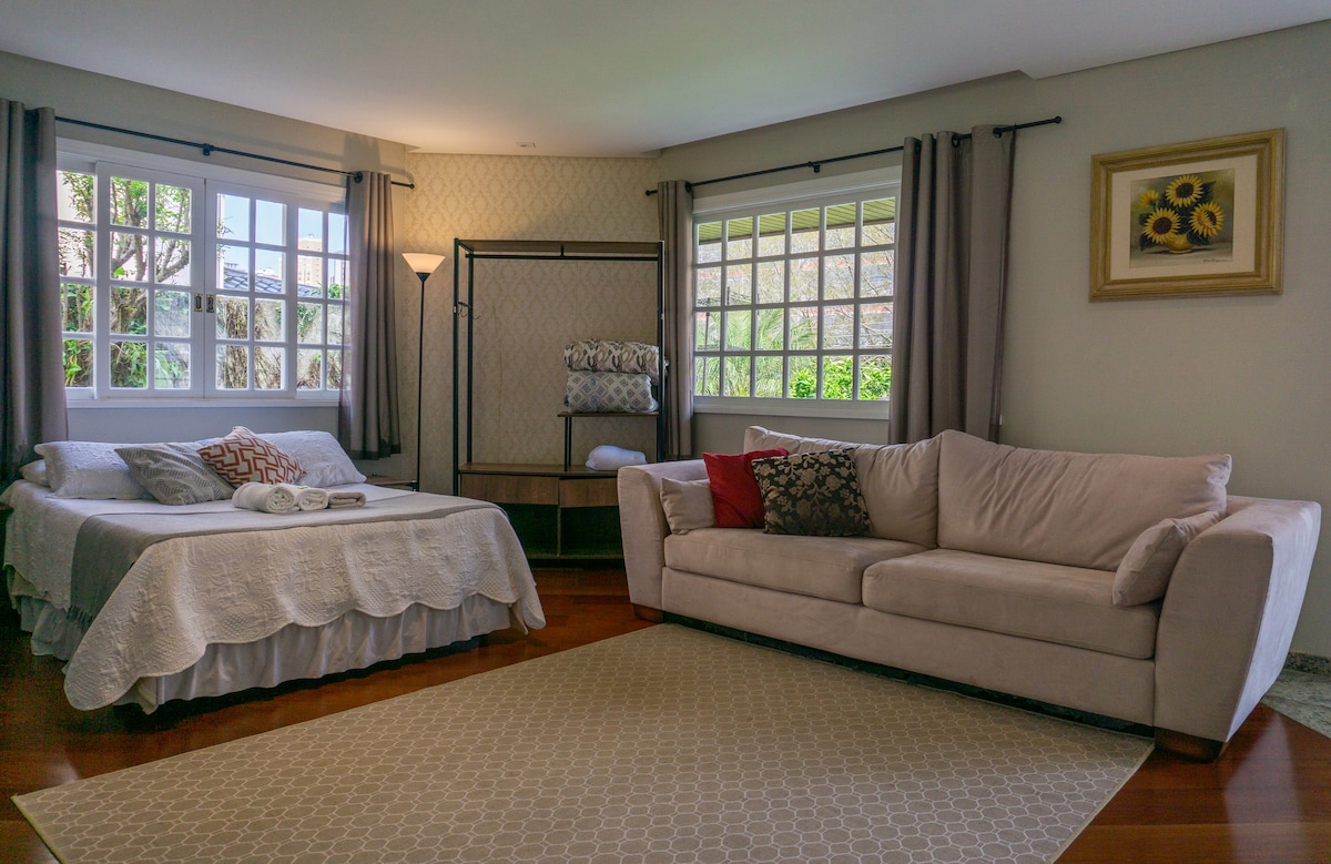 Vuelve a conectarte con la naturaleza en este entorno inolvidable. La propiedad está ubicada en el centro de la ciudad y ofrece un equilibrio entre comodidad y naturaleza. Ambientes acogedores y rodeados de zonas verdes, ofrece un refugio tranquilo en una zona privilegiada, cerca de restaurantes, tiendas y atracciones culturales. El lugar es ideal para quienes buscan la practicidad del centro de la ciudad sin renunciar a la tranquilidad de la naturaleza. 350m Panadería 400m Farmacia 500m Mercado 1.8 km JD. Botánico 1,8 km Est. Couto Pereira