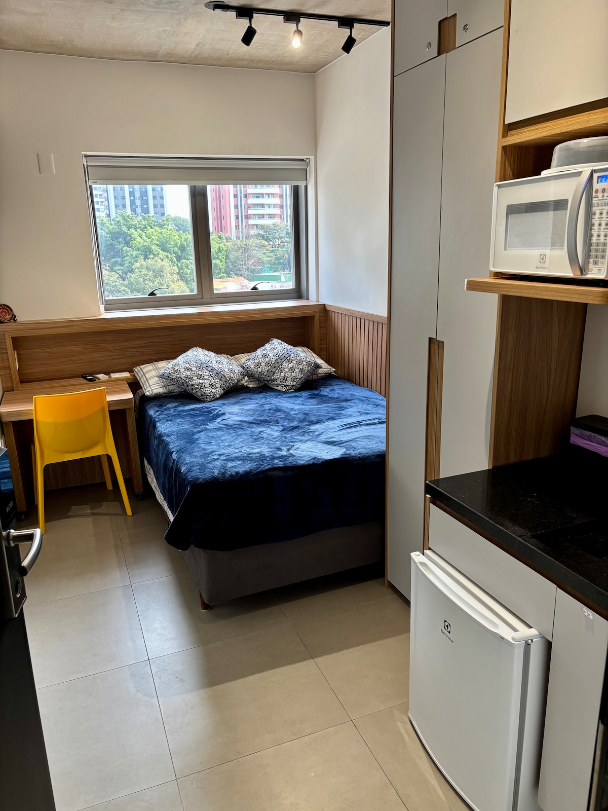Estudio nuevo y bien ubicado, cómodo y completo con techo alto. En el condominio hay un mercado Minuto Pão de Açúcar (acceso externo), gimnasio, piscina, coworking con wi-fi, lavandería OMO (pagada por separado) y atrio. Situado en el barrio de Vila Mariana, a 6 minutos a pie del metro y del centro comercial Santa Cruz, fácil acceso a Pq. Ibirapuera, Avenida Paulista, Avenida 23 de Maio, Ricardo Jafet, región central y zona sur (oficinas, restaurantes, bares, clubes, parques, colegios, hospitales, compras).