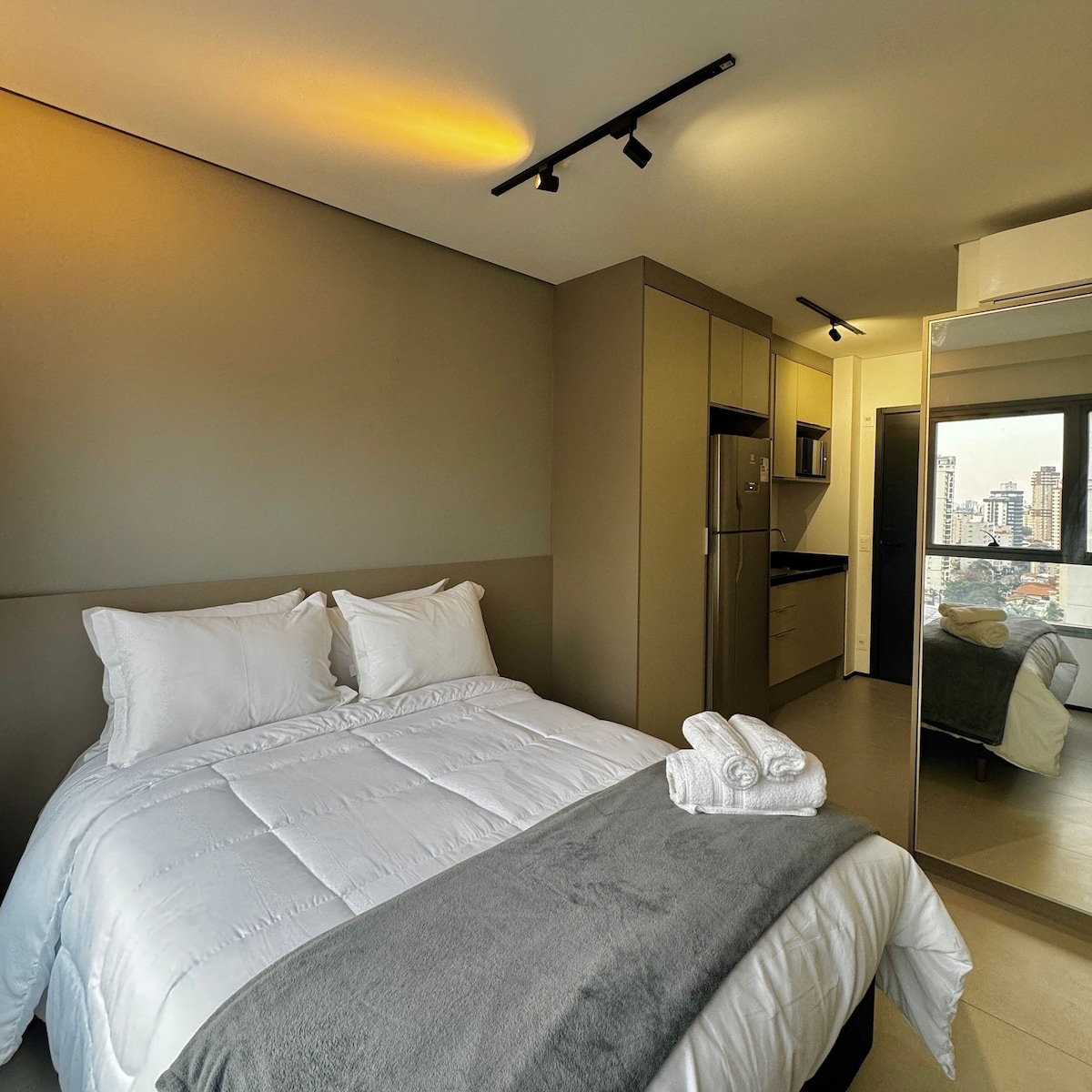 Loft moderno y exclusivo en el último piso en Vila Madalena. Ideal para quienes buscan tranquilidad, una vista privilegiada y comodidad para exámenes, visas o estudios. Equipado con wifi de 300 Mbps, aire acondicionado y un juego completo de ropa de cama. Cerca de CASV, ESPM, UNIFESP y de la estación de metro de Santa Cruz. El edificio ofrece un gimnasio abierto las 24 horas y un servicio de conserjería presencial. Zona con excelentes restaurantes, panaderías y mercados. Comodidad y seguridad en una ubicación privilegiada. ¡Reserva tu estadía!