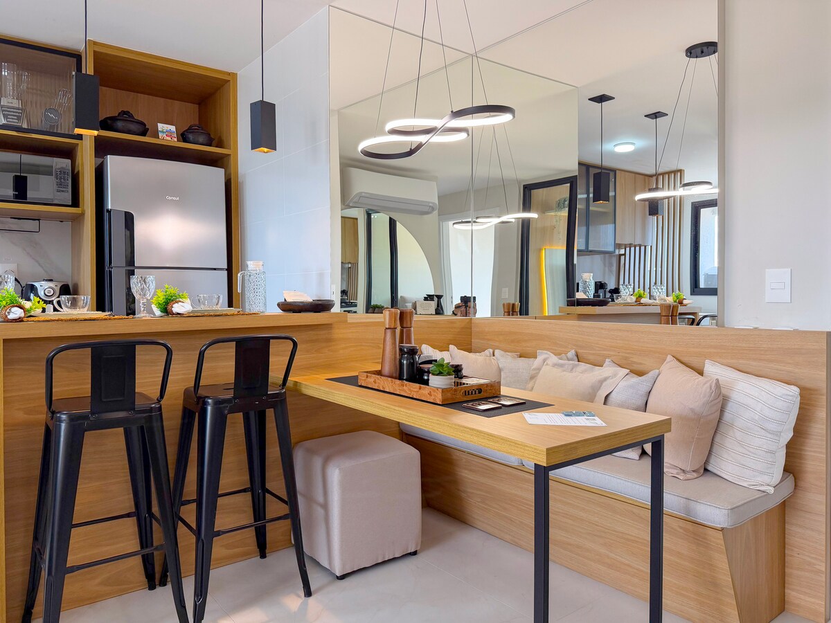 Imagina abrir la puerta y sorprenderte con un espacio lleno de comodidad y estilo. Así es este apartamento de 2 dormitorios (uno de ellos suite); una verdadera joya y lista para alojar hasta 6 personas de forma cómoda y acogedora. Si estás buscando un lugar con cara y estilo de hogar, ¡lo acabas de encontrar! Y lo mejor: en una ubicación estratégica de la ciudad, en la noble Enseada do Suá, desde donde se accede fácilmente a los principales puntos turísticos de Vitória y Vila Velha.