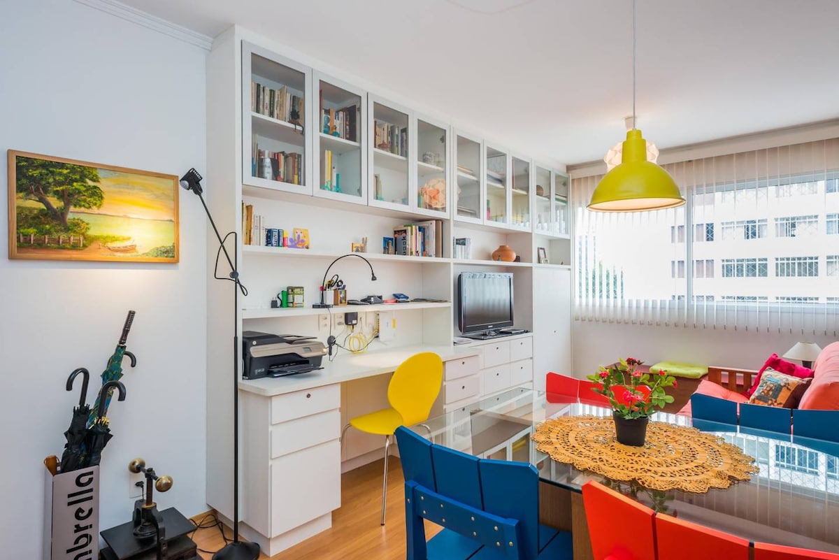 Elegante apartamento de 50 m² ubicado en Bela Vista, tiene portero las 24 horas. 2 dormitorios (solo 1 con aire acondicionado y cama tamaño queen, el segundo es bastante pequeño y se puede utilizar como oficina, con un sofá cama doble) y 1 baño. Con vistas increíbles desde todas las ventanas, es un lugar ideal para trabajar y relajarse. El jet-tube privado en el balcón es un lugar fantástico para disfrutar de las vistas de la ciudad. Ideal para parejas, profesionales o familias pequeñas que buscan comodidad, conveniencia y una de las mejores vistas de la ciudad.