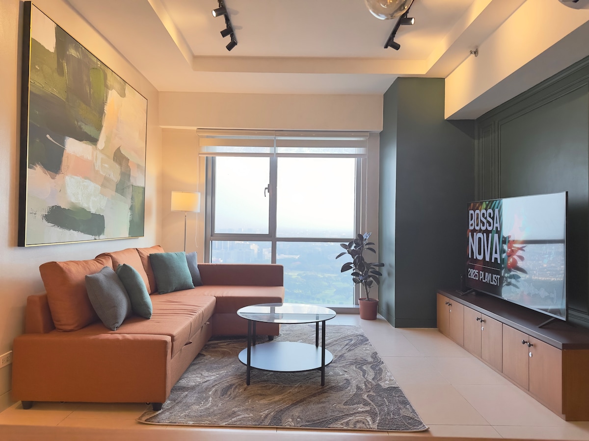 Book this luxury stay at the center of BGC. Everything is just a few steps away. Prime offices and high end malls surround The Infinity. Experience a cosmopolitan getaway. Explore unique food and shopping finds. Party the night away at premier bars right within the area. Unwind in our mid-century modern bedroom unit with a queen sized bed and a 50” smart tv. Enjoy your fave movie on a 65” smart tv in the living area. 400 MBPS internet provided for your work from home or surfing.