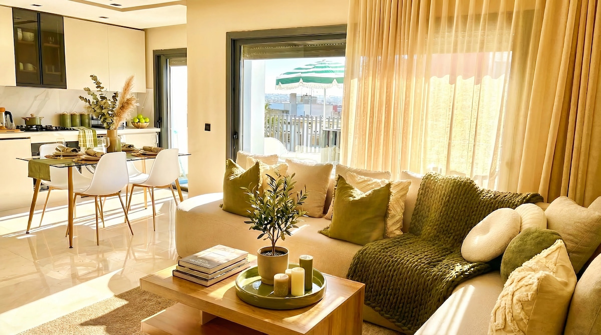 Bienvenido a este hermoso departamento ubicado en la Nueva Medina de Casablanca, cerca de Habous. Disfruta de un espacio refinado y cuidadosamente diseñado con una terraza luminosa, una decoración elegante y comodidades modernas, ideal para una estadía cómoda. Una cocina totalmente equipada y un estacionamiento seguro garantizan comodidad y tranquilidad. Un refugio tranquilo y contemporáneo donde cada detalle ha sido cuidadosamente considerado para que tu estancia sea inolvidable.