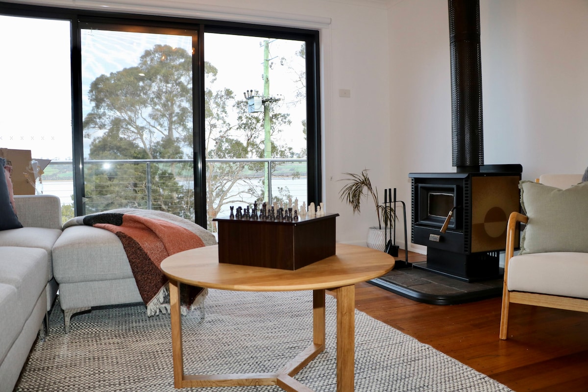 Piérdete a orillas del río Tamar. Con vistas de 180 grados al río, un acogedor salón con calefacción de leña y todo lo que puedas necesitar para disfrutar de una estancia relajante y reparadora. Relájate en la terraza, explora la orilla del río y pesca en el muelle o date un baño (ponte los zapatos y comprueba la marea). Deviot está a 30 minutos de la ciudad de Launceston, cerca de muchas bodegas boutique. Pero cuando te relajes en tu chalet, te sentirás a un millón de kilómetros de cualquier lugar.