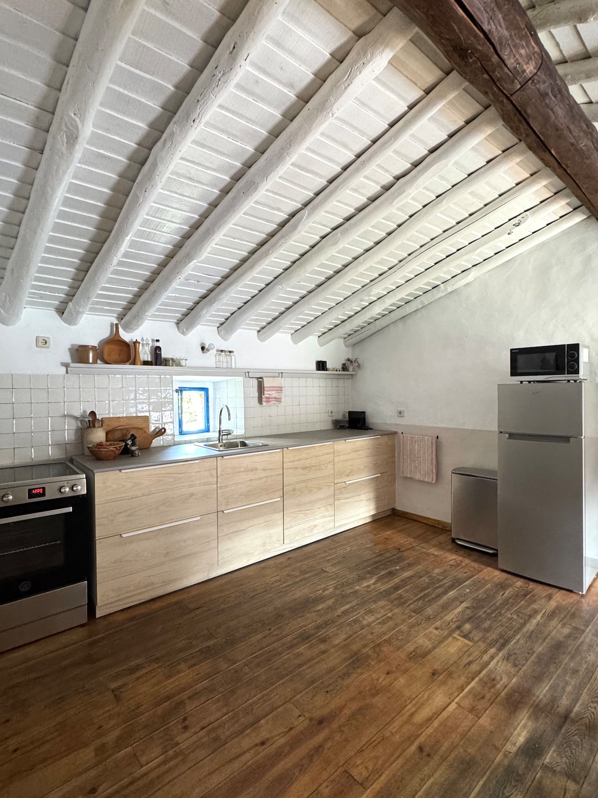Nuestra pequeña casa de piedra se encuentra junto a un arroyo y tiene vistas a las hermosas colinas y prados llenos de olivos y alcornoques. En el jardín encontrarás algunos árboles frutales, hierbas y flores. No muy lejos hay una bonita cascada para disfrutar de los calurosos días de verano. Este es un lugar tranquilo para relajarse. Aquí puedes sumergirte en la belleza de la naturaleza, disfrutar del cielo lleno de estrellas y escuchar el sonido de las campanas de las ovejas.