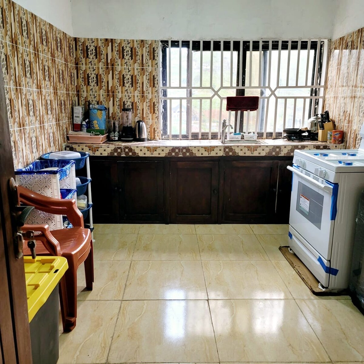 Keep it simple at this peaceful and centrally-located place. One minute walk to the main road with easy access to transportation. Located in a secluded gated compound, nestled in quiet environs with 24 hour electricity, water supply and security. Cleaner, Caretaker available for an additional fee. Safe & secure environs. Guard dogs on location late at night when residents are in. Backup Solar and regular generator.