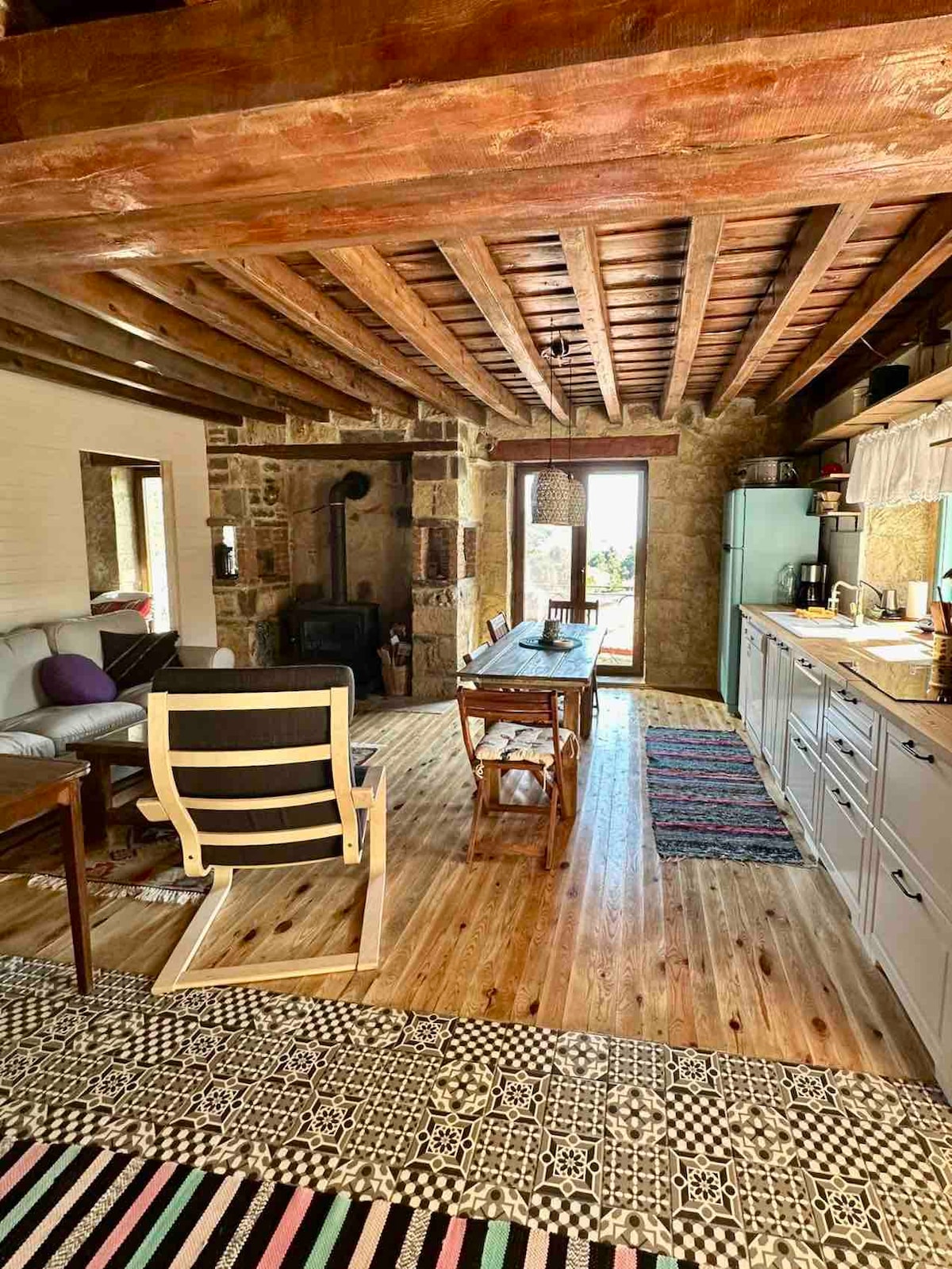 La restauración de nuestra casa de piedra en el pueblo de Ayvacık Sazlı, y se completó hace 8 años. Hemos abierto la planta superior de nuestra casa recién decorada a nuestros huéspedes, mi esposa y yo vivimos en la planta baja. Disfrute de las bellezas de nuestro pueblo con las islas de Lesbos, las montañas y el mar. Su gran jardín y todos los sonidos y colores de la naturaleza le acompañarán. El puerto de Assos está a solo unos kilómetros de la histórica Behramkale. Puede llegar a Küçükkuyu en 20 minutos en coche.