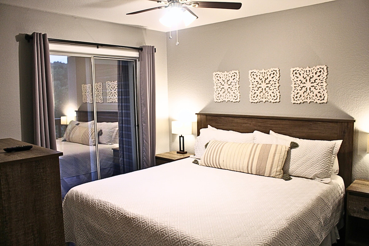A pocos minutos de Table Rock Lake, ¡este condominio ofrece el telón de fondo perfecto para todas tus aventuras en Branson! Dos camas tamaño queen y un sofá cama ofrecen opciones para dormir para hasta 6 personas. Las vistas al campo de golf desde nuestro balcón del tercer piso y una cocina de servicio completo completan este tranquilo condominio. A poca distancia en auto de Silver Dollar City, la estampida de Dolly Parton, el Museo del Titanic y el teatro Sight and Sound, ¡nuestro hermoso condominio hará que las vacaciones sean increíbles!