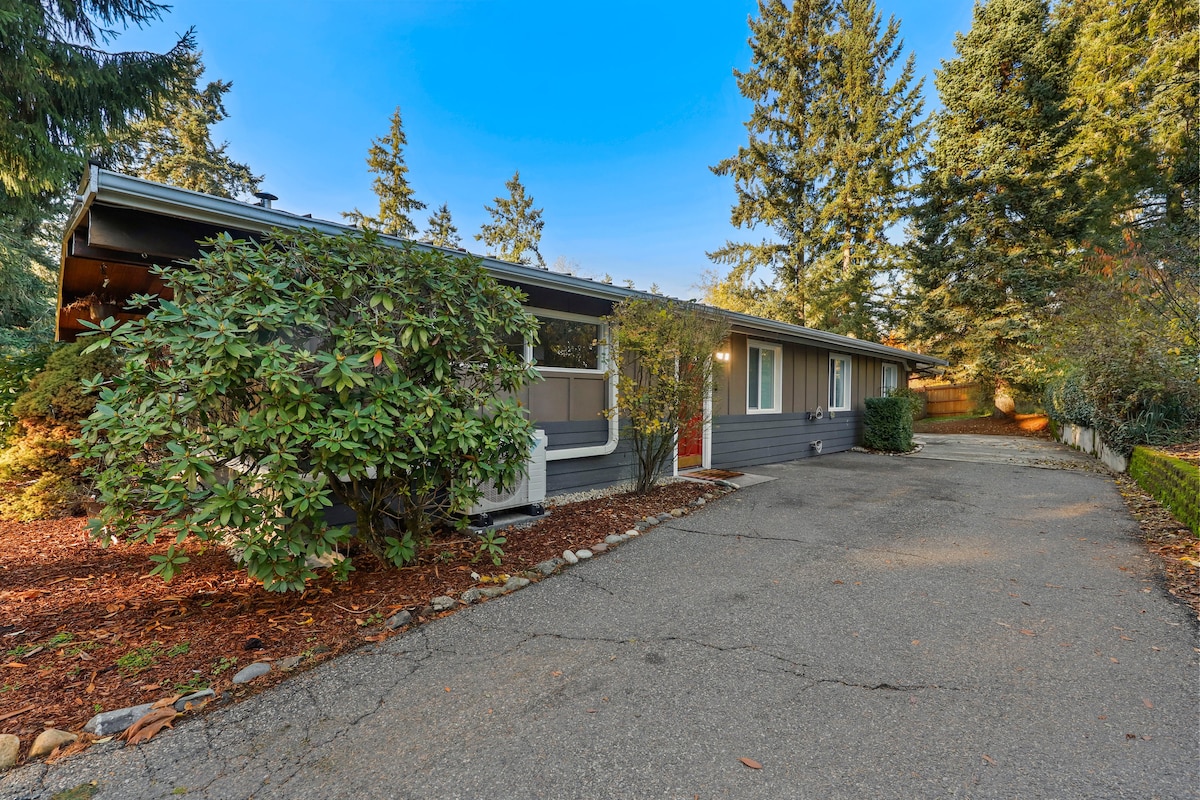 ¡Esta escapada al bosque encantado proporcionará el entorno relajante que tu alma anhela! Desde la hermosa cascada y el arroyo que rodean la propiedad, hasta las vistas al agua del estrecho de Puget, cinco acres para explorar y a solo un rápido y tranquilo paseo hasta el acceso a la playa con uso de kayaks y tablas de remo... ¡esta propiedad está lista para que vengas a relajarte y disfrutar! La ubicación es privilegiada para explorar en cualquier dirección desde el fácil acceso a los transbordadores de Seattle, las bases militares, el canal Hood y el bosque nacional Olímpico.