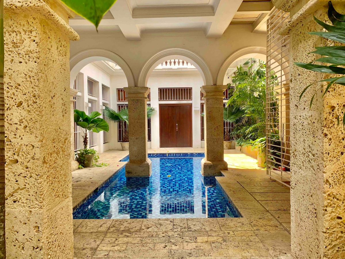 This stylish unique house is located in the Centro Historico of Cartagena, in the trendy neighbourhood of San Diego. It is a tasteful home for a romantic hideout. This property offers a refreshing private pool, a small rooftop terrace perfect for sunset cocktails, A/C where needed and the option to cater for 5 guests. Right next to great bars and restaurants, this stylish Historical Colombian home is filled with great details, high ceilings, wooden beams, antique bath, and quality amenities.
