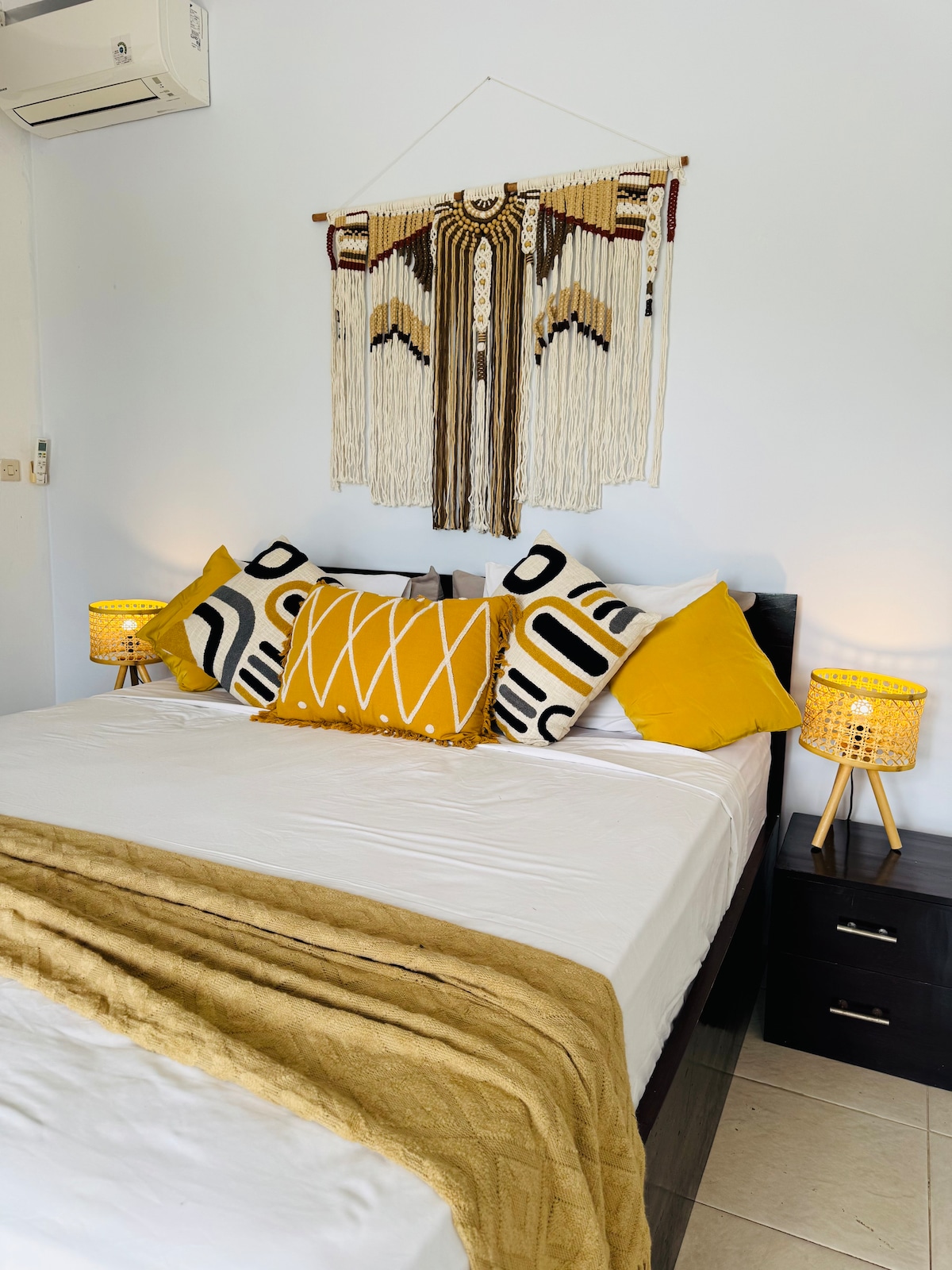 Sumérgete en confort tradicionales, completo con sábanas y toallas frescas, aire acondicionado y cómodas camas para una noche de sueño perfecta. Cada habitación incluye un armario y un toallero, además de un área privada de descanso al aire libre para relajarse. Camina dos minutos hasta la playa, donde puedes avistar delfines juguetones o disfrutar de los deliciosos restaurantes y warungs cercanos. No te pierdas las atracciones cercanas, como impresionantes cascadas y sorprendentes templos.