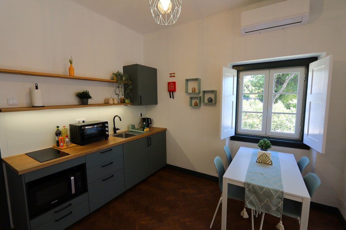 A suite in a farmhouse renovated for tourism, preserving the original charm of a traditional Sintra home, is ideally located near Sintra's attractions and amenities. It is perfect for couples, and solo travelers seeking a memorable and relaxed vacation. Surrounded by a tranquil garden setting, the house balances peaceful greenery with urban life. It offers a blend of rustic charm and modern comfort, featuring clean linen, a comfortable bed, and a garden view from every window.