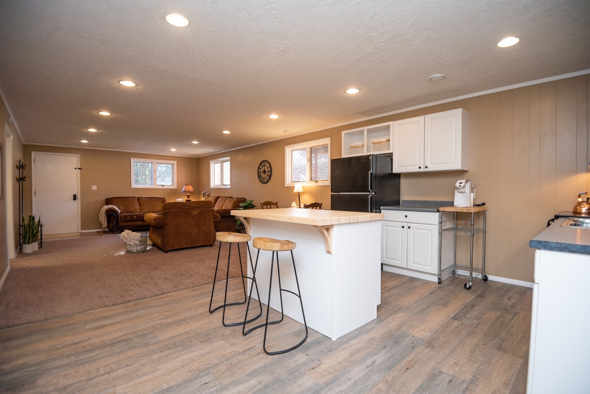 Este apartamento en el sótano ofrece una entrada independiente que permite una total privacidad. Este espacio proporciona mucha luz natural. El apartamento se encuentra cerca (¡a menos de una milla!) de la Universidad de Dordt y tiene un parque público y una cancha de baloncesto en el patio trasero. La cocina está equipada con utensilios de cocina estándar que incluyen ollas/sartenes, cubiertos, utensilios, freidora de aire, tablas de cortar, etc. Un dormitorio tiene un colchón tamaño king, mientras que el otro dormitorio tiene un colchón tamaño queen.