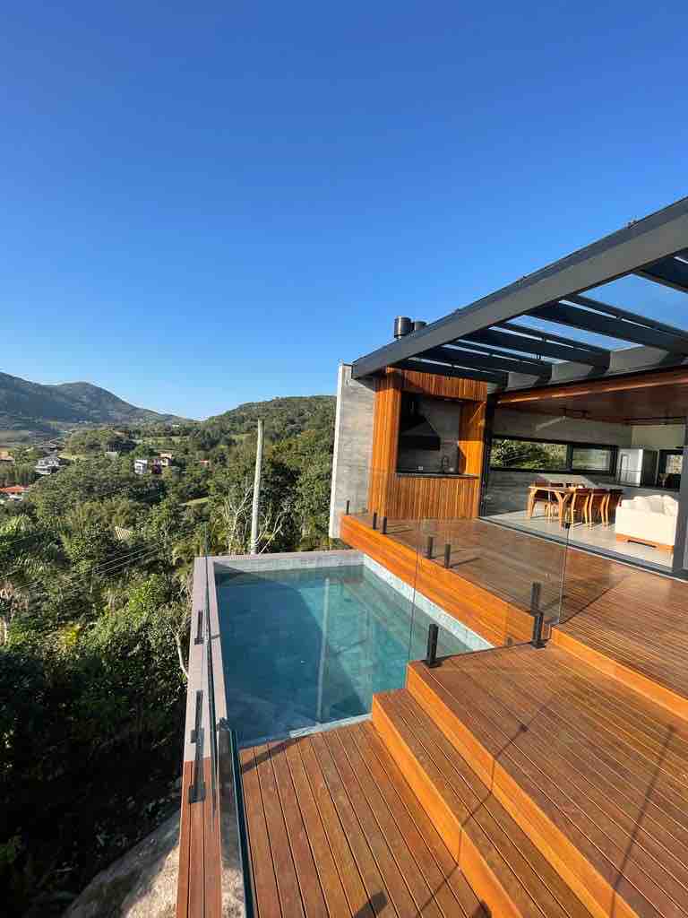 Casa com muito estilo e uma vista de tirar o fôlego! Para quem busca as melhores experiências, conforto, sofisticação, segurança e tranquilidade! Três suítes + Suíte Master com cama King size, lareira de etanol, frigobar e banheira de hidromassagem. Spa aquecido no deck, mesa de sinuca, ar condicionado em todos os quartos e sala, wifi, churrasqueira interna e externa, adega, cervejeira, lava louça e lava roupas. Adoramos Pets, porém não permitimos cachorros de grande porte.
