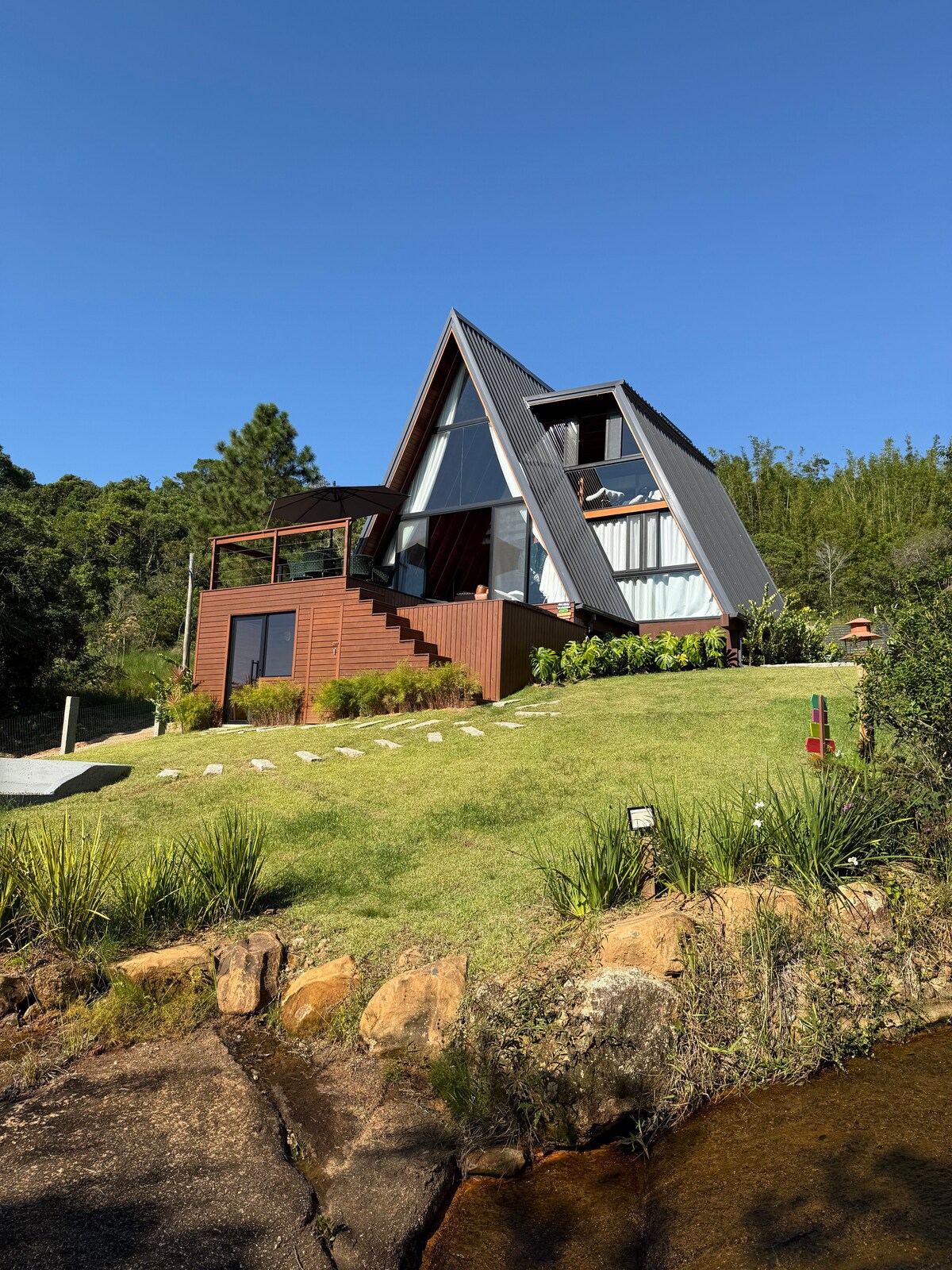 Reconecte-se com a natureza nesta fuga inesquecível! Um lugar incrível e privado para refletir, criar e mergulhar na natureza de forma harmoniosa. Aqui, você experimentará uma sensação única de imersão ao estar cercado pela Mata Atlântica enquanto contempla e o nascer do sol e vistas deslumbrantes sobre o oceano, a lagoa e a montanha da Pedra Branca. A intenção é que ao ficar aqui você se desconecte totalmente do mundo exterior e se reconecte consigo mesmo!